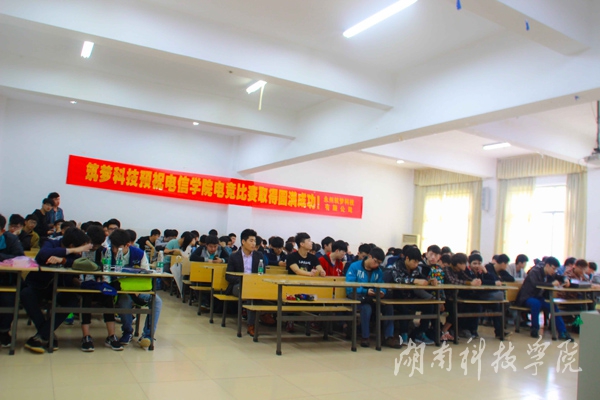 本网讯(通讯员 刘俊雄 吴清燕)4月8日下午,由电子与信息工程学院主办的英雄联盟电子竞技比赛在知行楼404和405机房举行。