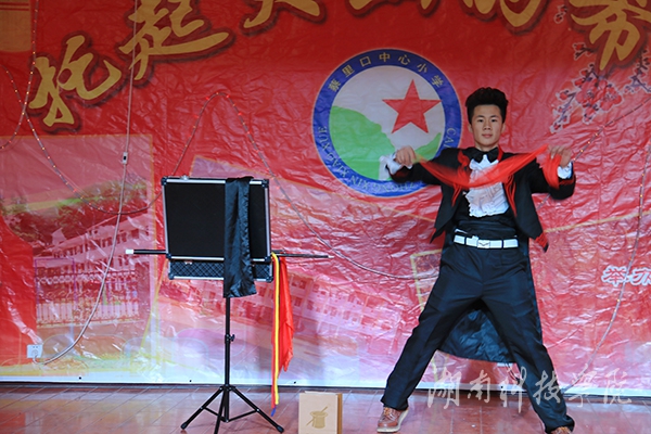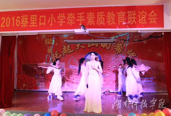 此次联谊会上永利官网音乐与舞蹈学院与蔡里口小学齐齐表演精心准备的节目表演获得大家一致好评。《小人舞》以动感的串烧音乐、浮夸的装扮与面部表情出境,诙谐幽默地展现了小人物身上的正能量;魔术表演将联谊会推向了高潮,娴熟的技巧、灵活的手法,让观众看得目不转睛,台下掌声雷动;陶笛演奏美妙的天籁之音,让现场观众沉醉其中;群舞《小伙四弦马樱花》充满了生动、欢趣、幽默、和谐的情节,让大家沉浸在欢乐之中;歌伴舞表演《美在永州》,其甜美的嗓音及其身后翩翩动人、婀娜多姿的舞姿,不仅给予现场师生视觉上的和心灵上的震撼,而且仿佛已将永州的风景美和其深厚文化底蕴诠释地淋漓尽致。