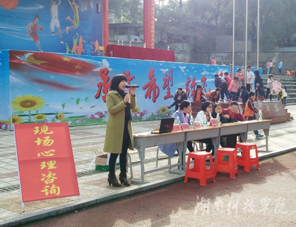 本网讯(记者 龙满金)为充分利用地方本科高校优势资源,服务地方文化、服务民生作出应有的贡献,11月25日,人文与社会科学学院教师教育教学部应零陵区徐家井小学邀请,开展心理健康教育进校园大型心理公益服务活动。