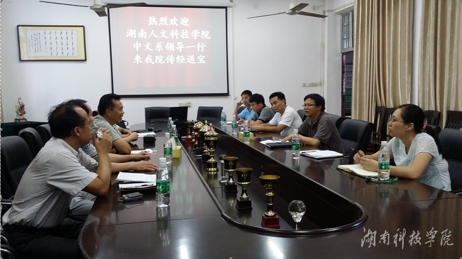 湖南人文科技学院中国语言文学系设有汉语言文学、秘书学二个本科专业,与永利官网人文院中文系、秘书学系设立的汉语言文学、秘书学专业一致。交流中,双方介绍了各自的办学经验、专业建设、师资队伍建设等相关情况。重点探讨了在同类院校中中国语言文学类专业如何转型发展,及如何制定好地方院校二级院系“十三五”事业发展规划等问题。