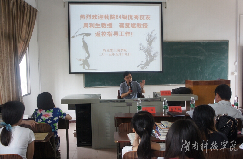 本网讯(通讯员 曹金莎)5月19日上午,马克思主义学院邀请84级优秀校友周利生教授来校讲学。周利生以“坚定理想信念、做优秀大学生”为题给全院学生上了一堂生动的思想教育课。