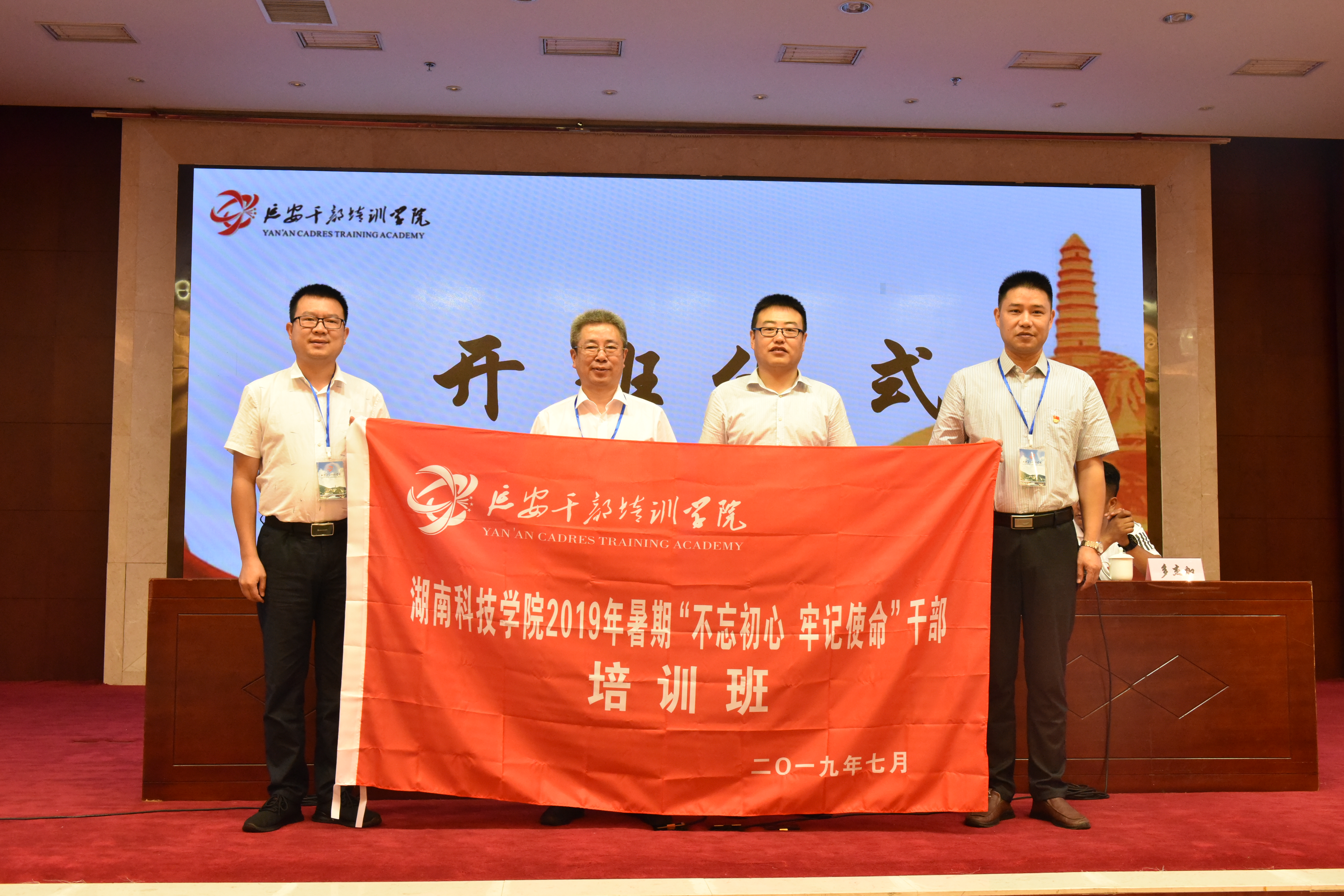 本次培训为期5天,主要采取集中授课、现场教学、实景感受、体验式教学等方式,系统开展党性修养、延安精神、廉政建设等方面的学习。在开班仪式上,延安干部培训学院培训处处长罗鹏雄为培训班授旗。
