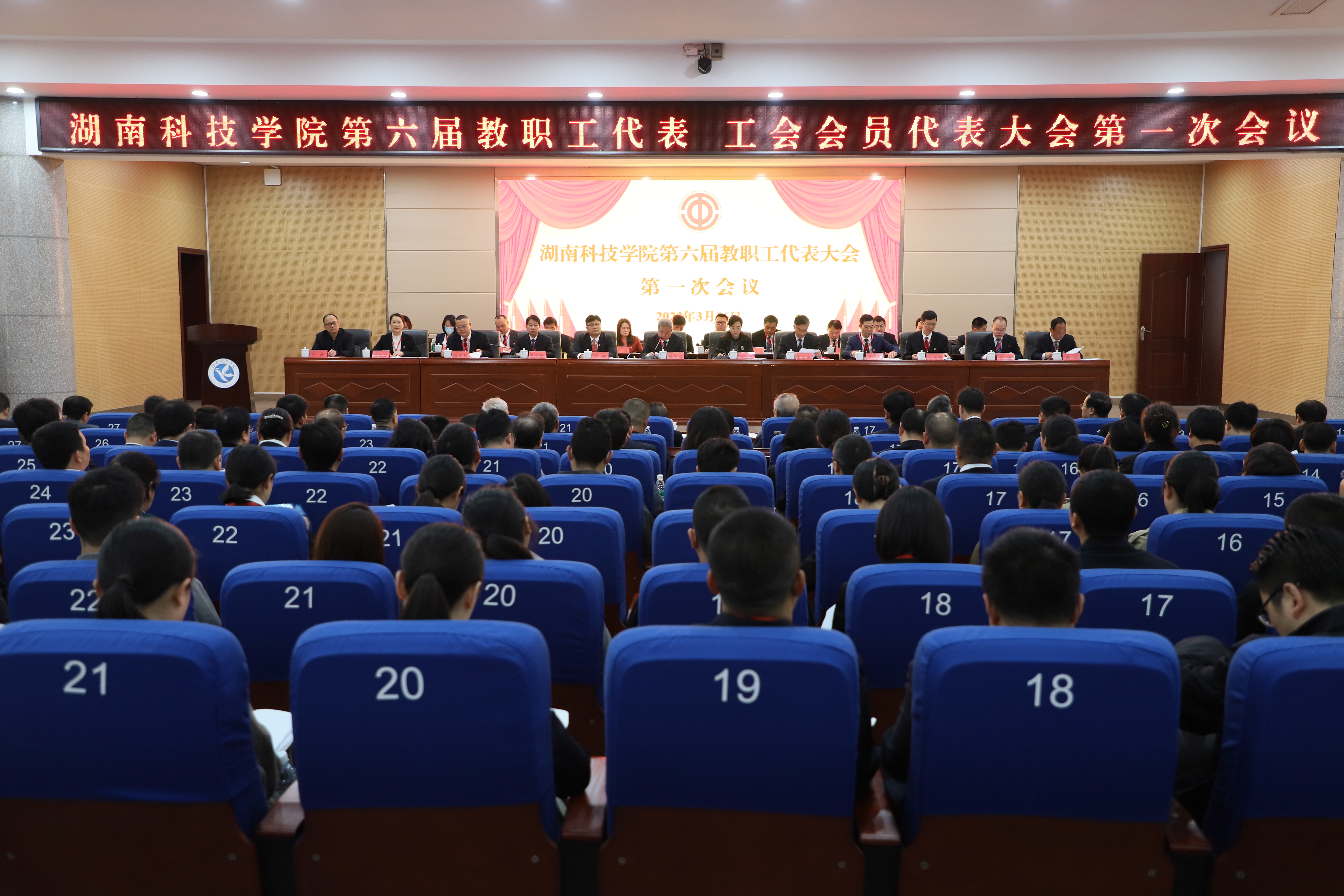 本网讯(记者 余佳佳)3月16日,永利官网第六届教职工代表、工会会员代表大会第一次会议在潇湘大讲堂隆重开幕。湖南省教育工会副主席邓曼,湖南省教育工会高教部部长彭峰,党委书记曾宝成,党委副书记、校长李钢,校领导宋宏福、李常健、吴小林、何福林、陈灿军、郑银芳、何海,党委委员、组织部部长杨涛,全体代表、特邀嘉宾和列席代表207人齐聚一堂,共同商讨学校发展大计。