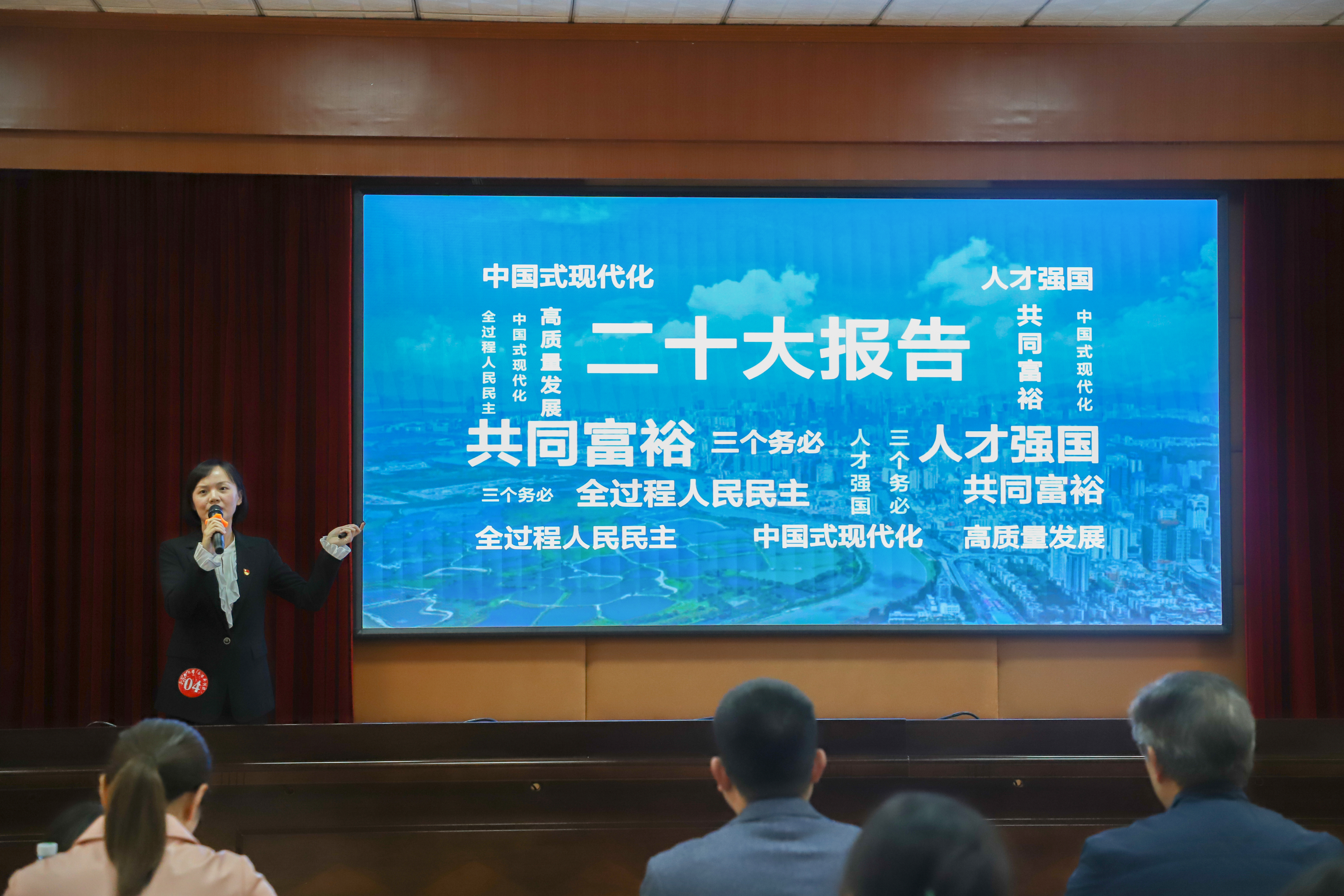 经学校各直属党组织报名推荐,共有24名教师参加比赛。比赛现场,选手们依次围绕“学习新思想 奋进新征程”主题,运用生动故事、翔实数据,创新方式方法宣传党的二十大精神。