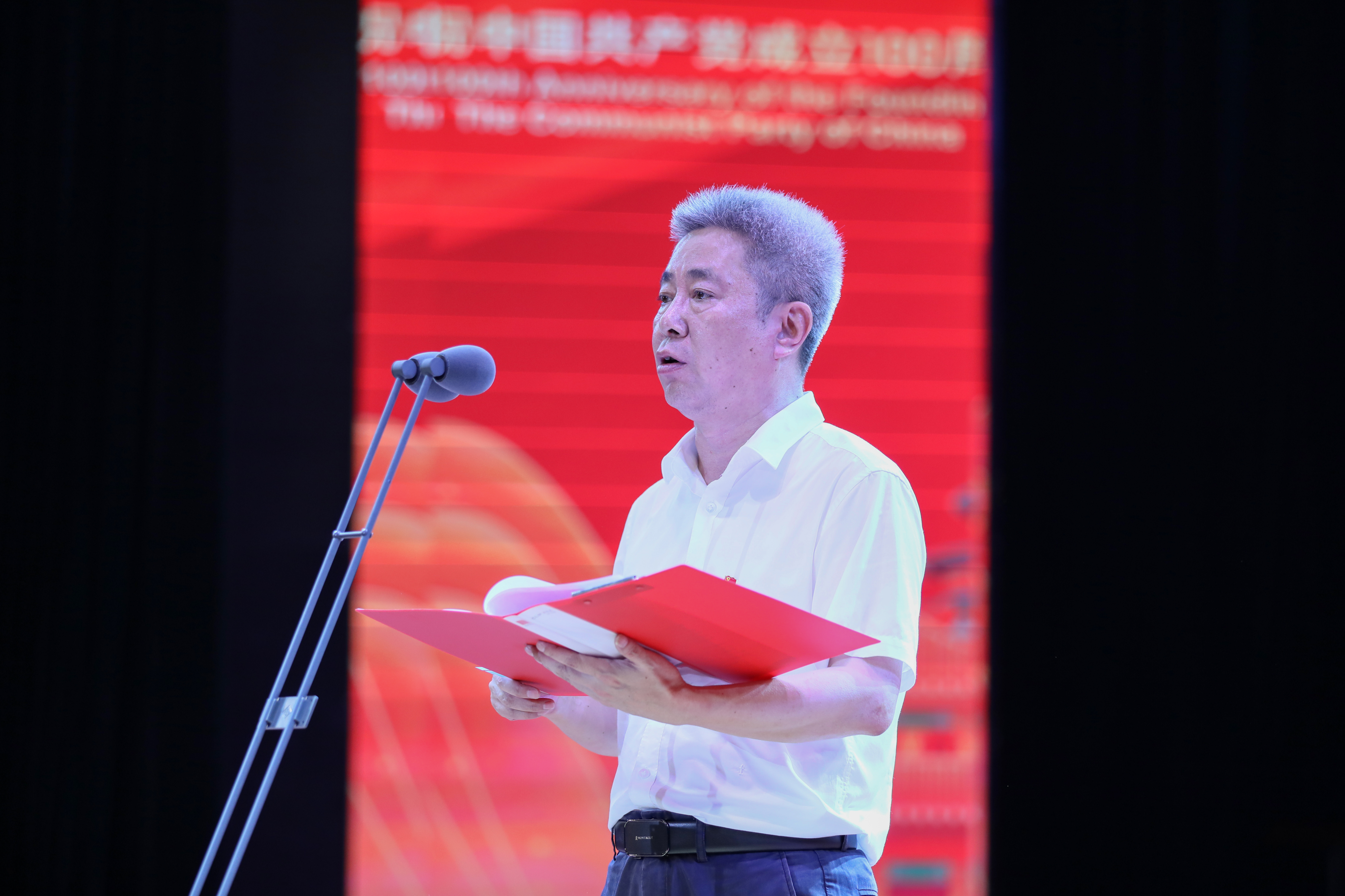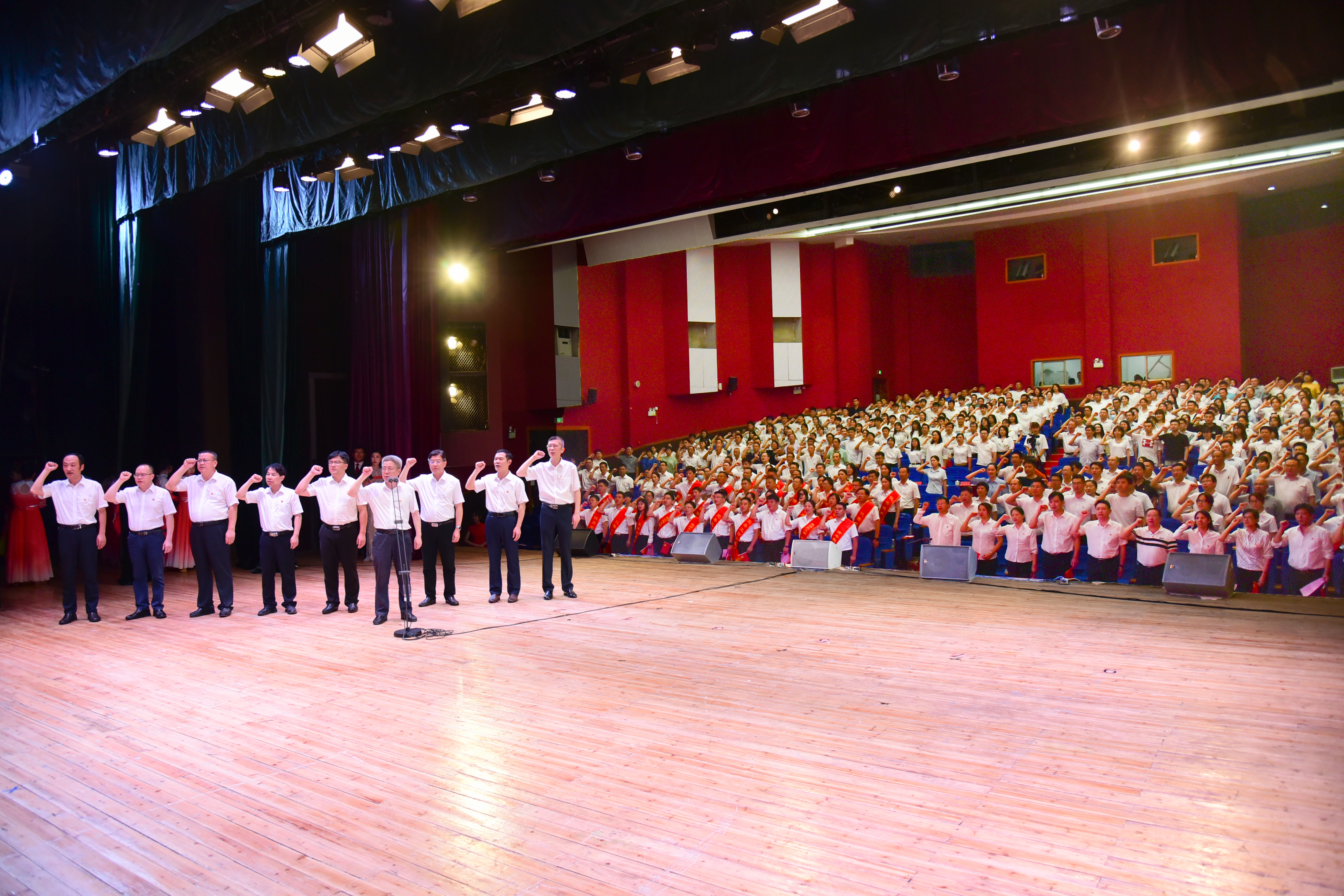 大会现场,曾宝成带领全体党员面向党旗,举起右拳,重温入党誓词:我志愿加入中国共产党,拥护党的纲领,遵守党的章程,履行党员义务,执行党的决定,严守党的纪律,保守党的秘密,对党忠诚,积极工作,为共产主义奋斗终身,随时准备为党和人民牺牲一切,永不叛党!铿锵有力的宣誓声响彻会场。