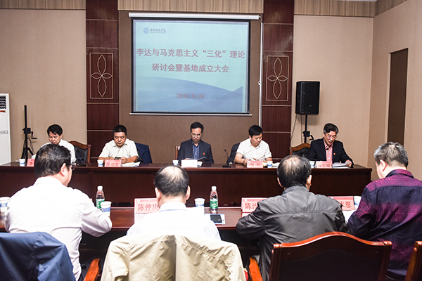 本网讯 9月29日,李达与马克思主义“三化”理论研讨会暨基地成立大会在永利官网召开。市委常委、宣传部长贺辉,省社科规划办副主任陈湘文参加会议并为基地揭牌,校党委书记陈弘,副校长宋宏福、李常健,李达故居管理处、冷水滩区委宣传部、市委党校等有关单位专家学者及学生50余人参加会议。