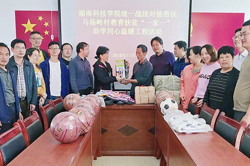 11月1日,学校党委统战部组织民主党派、统战团体对接学校扶贫点,赴新田县枧头镇马场岭村开展“一家一”助学·同心温暖工程和“以购代捐”扶贫活动,各民主党派、统战团体积极派员参加。