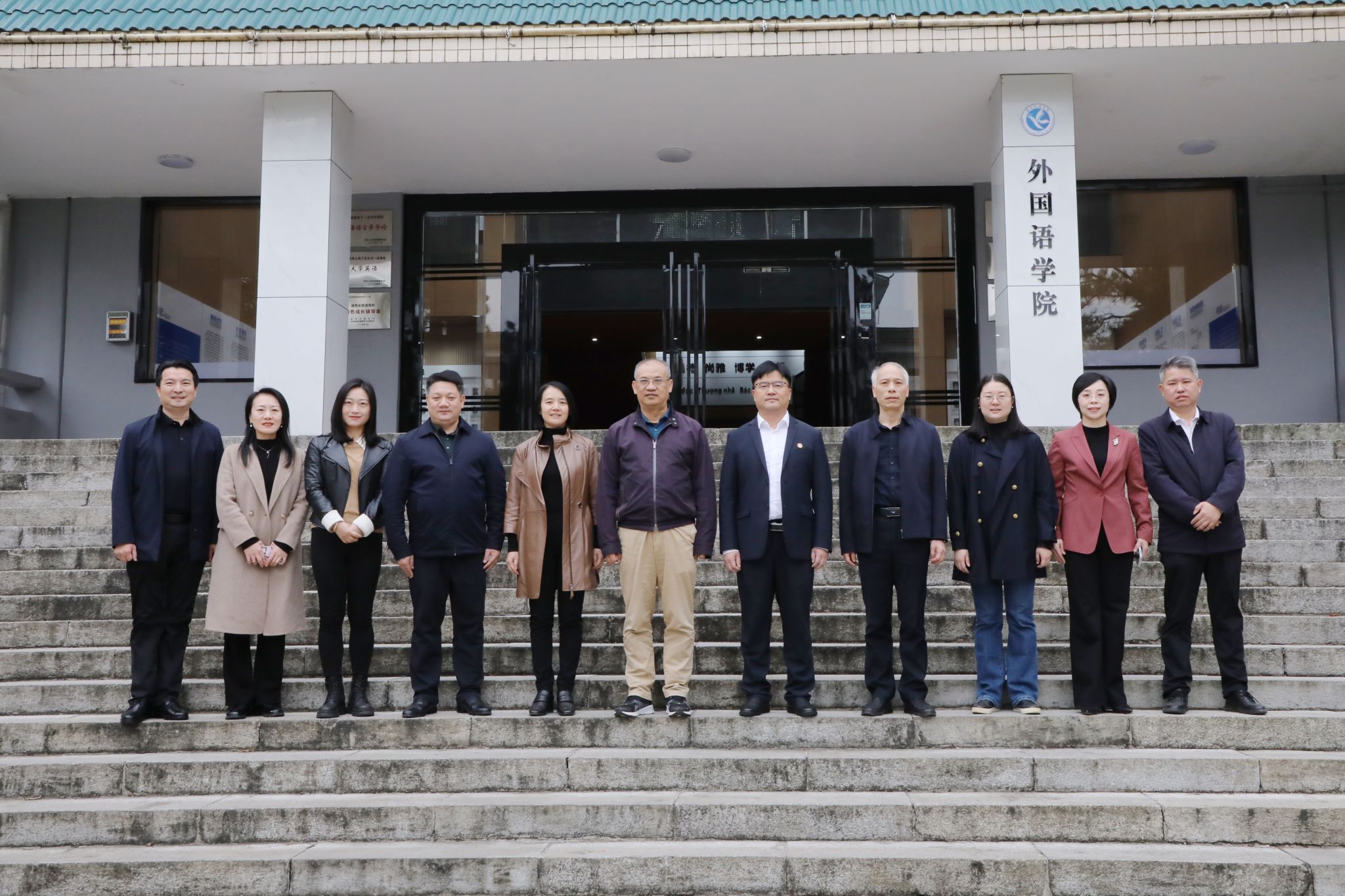 本网讯(记者 向薛峰 唐晶 刘斌 摄影 谢志豪)11月21日,湖南省政协副主席、民进湖南省委会主委潘碧灵,省委统战部党派处处长汤国旺,民进湖南省委会组织处处长周莉一行来校考察调研,并进行座谈交流。永州市委统战部常务副部长、一级调研员邓晓明,民进永州市委会主委、永州市市场监督管理局局长陈丽萍等人参加。校党委书记李钢,党委副书记宋宏福,省政协委员、永州市政协常委、学校民进支部主委、外国语学院院长何丽萍等陪同调研。座谈会由宋宏福主持。