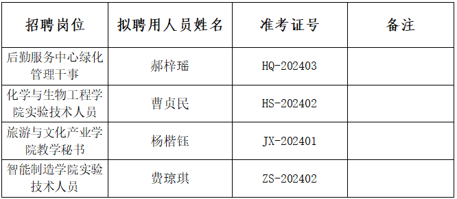 根据《304am永利集团官网2024年公开招聘人事代理制专业技术人员公告》有关规定,经报名、资格审查、笔试、面试、专业技能测试、成绩公示、体检、考察等程序,经304am永利集团官网校长办公会研究,确定郝梓瑶等4名同志为304am永利集团官网2024年公开招聘人事代理制专业技术人员拟聘用人选,现予以公示。