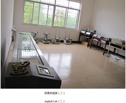 | 沥青实验室(一) 该室于2006年由“中央与地方共建基础实验室”项目专项资金资助建立,实验室面积70㎡,资产达25万元。该室目前承担了路基路面工程、土木工程材料等课程的实验教学任务。主要实验项目:沥青针入度、软化点试验;沥青加热老化试验;沥青闪、燃点试验;沥青薄膜加热试验;沥青蜡含量试验;沥青动力粘度试验等。 部分主要仪器设备 设 备 名 称 | 规格型号 | 数量 | 沥青蜡含量仪 | CXS-10 | 2 | 低温恒温水浴 | HWY-20 | 2 | 电脑沥青针入度仪 | SYD-2801C | 6 | 电脑沥青软化点测定仪 | SYD-2806F | 6 | 沥青旋转薄膜烘箱 | 85型 | 2 | 自动恒温沥青标准粘度仪 | LZN-1 | 2 | 沥青运动粘度计 | SYD-0602 | 2 | 电脑全自动沥青闪燃点仪 | LSR-2 | 7 | 电动马歇尔击实仪 | LJS-2 | 2 | 全自动沥青混合料拌合机 | SLHB-Ⅱ | 1 | 微机控制沥青混合料材料性能试验系统 | LMT-3 | 1 | 离心式沥青抽提仪 | LLC-15 | 1 |