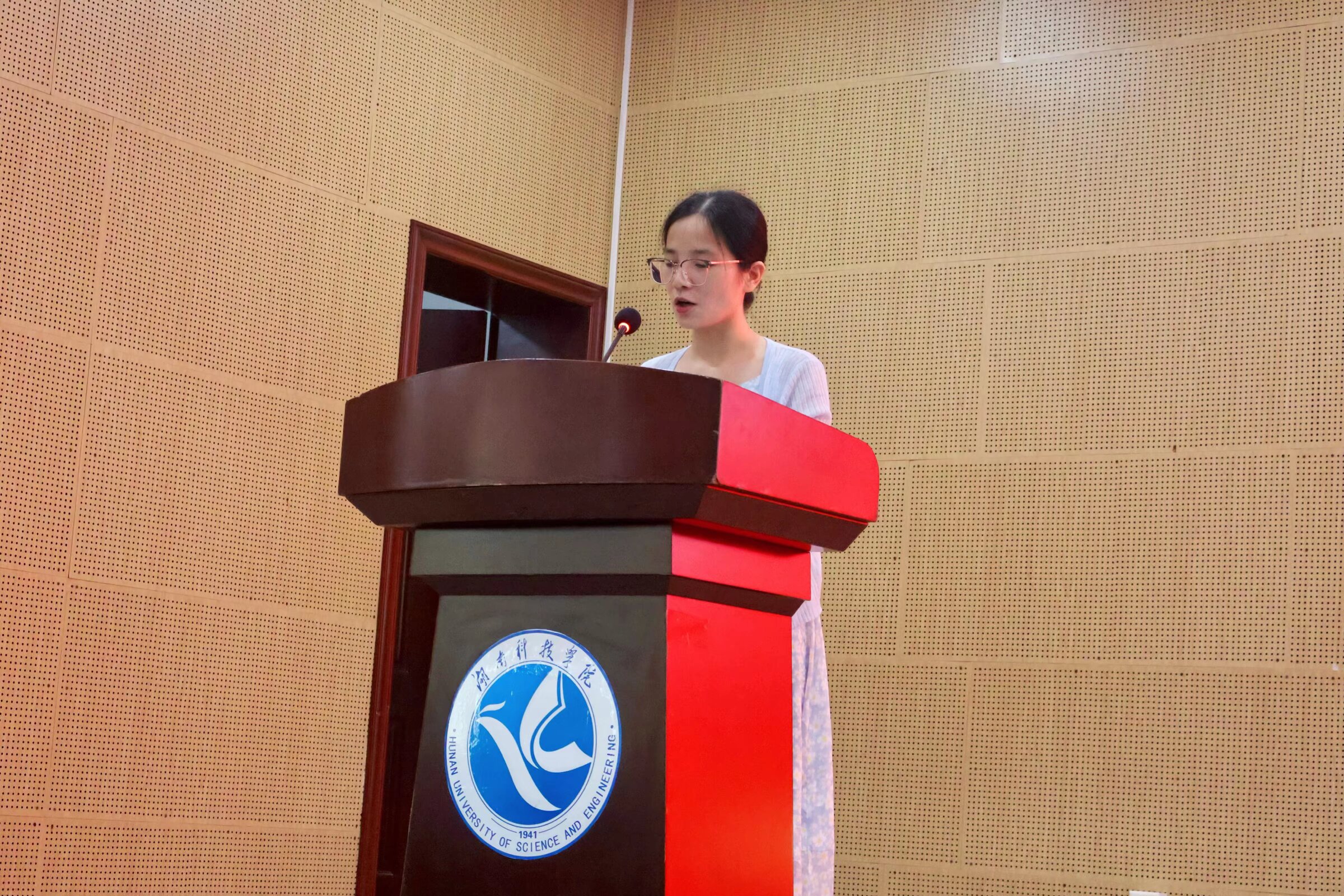 随后,教师代表、国家级一流课程负责人郭恩平副教授以 “探索、积累、突破” 为关键词,结合自身教学科研经历,勉励新生既要科学规划大学时光,扎实掌握专业基础,也要主动参与实践创新,在探索中积累经验,在积累中实现突破,以真才实学扛起时代赋予的责任。校长奖学金团体奖获得者代表、建筑 2202 班吴启同学分享了自己在学科竞赛、志愿服务中的成长故事,鼓励学弟学妹们大胆尝试、勇于挑战,在多元实践中发掘潜力,书写独一无二的青春篇章。新生代表、土木 2502 班张子芊同学则代表全体 2025 级新生表态,将以 “德才兼备、自强不息” 的校训为指引,坚定理想信念,勤学笃行、不负韶华,在湘科院的沃土上追逐梦想、成长成才。