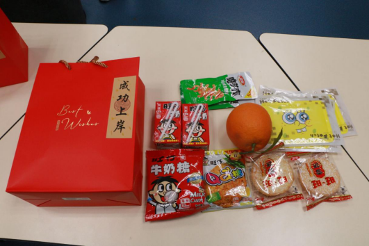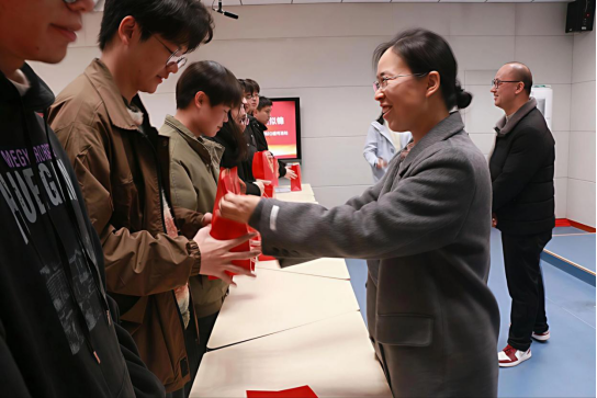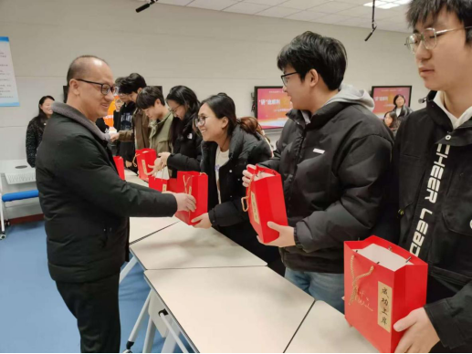最后,学院领导为考研学子送上精心准备带有“心想事‘橙’”、“旺旺”、祝福贺卡、暖宝宝等美好寓意的“成功上岸”大礼包。相信考研学子们带着这份温暖与力量,在考场笔锋所至、梦想开花、一战成“硕”!