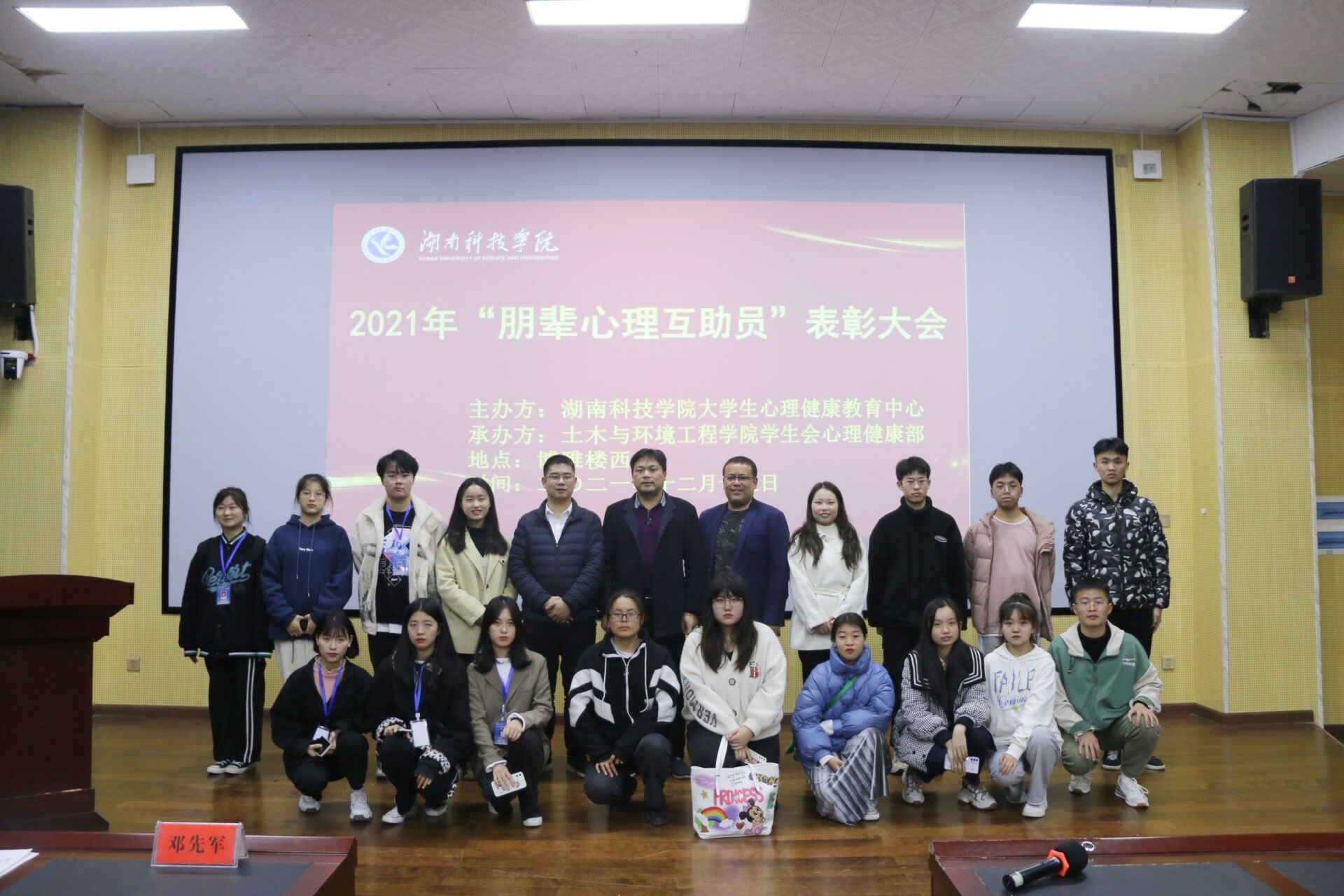 | 举行朋辈心理互助员表彰大会 本网讯(通讯员 王晶晶) 12月15日晚,由学工部大学生心理健康教育中心主办,土木与环境工程学院学生会心理健康部承办的304am永利集团官网2021年朋辈心理互助员表彰大会在博雅楼西三举行。土木与环境工程学院党总支书记邓先军、学工办主任张亚南、304am永利集团官网大学生心理健康教育中心副主任涂巍及各学院心理专干老师出席,受表彰的全体朋辈心理互助员参加。会议由土木与环境工程学院辅导员、心理专干王晶晶主持。 表彰会上,播放了各学院心理活动风采视频。接着,王晶晶宣读《304am永利集团官网学生处关于表彰2021年“优秀朋辈心理互助员”的决定》 ,出席会议的领导、老师依次为获得“优秀心理部部长”、“优秀心理部干事”、“优秀心理委员”、“优秀心理信息员”的同学颁奖。随后,获奖代表发言。优秀心理信息员,理学院数应2004班肖霞表示对可能存在心理危机的同学,要及时发现和上报;优秀心理委员,外国语学院日语2001班周子杰表示要积极发挥心理委员作用,开展形式多样的心理活动;优秀心理部部长,土木与环境工程学院工管1903班朱雯认为,做好心理部长最重要的是具备五心——爱心、细心、耐心、关心、责任心。最后,观看了2021年心理微视频大赛一等奖获得者视频——马克思主义学院思政2002班郑艳多、黄晓慧制作的《防“抑”运动,向emo突击》。 涂巍对获奖同学表示热烈的祝贺和衷心的感谢,对受表彰的朋辈心理互助员提出了3点希望:一是科学认识,正确对待;二是积极向上,保持活力;三是用心感悟,生活幸福。邓先军对获奖的同学表示祝贺,对各位心理健康指导老师、心理专干、心理部干部、心理委员、心理信息员的辛勤付出表示赞赏和感谢,他说,正是我们这一群“心灵的守护者“默默无闻的付出,让校园有了更多的爱和温暖,让全校一万六千余名学生能够开心学习、生活,平安、健康成长,让学校和学生家庭更放心,最后他说,心理健康服务工作对促进同学们顺利成长成才十分重要,希望大家再接再厉,持之以恒地做好这项工作,并进一步提高工作能力、水平,更好地为广大同学保驾护航。