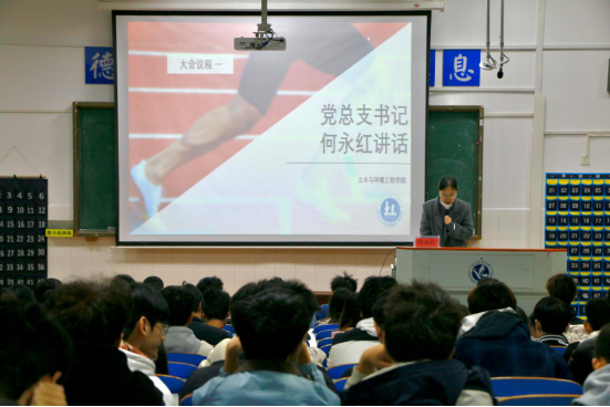 本网讯(通讯员 罗琅贵 阿克别热买提)11月18日,土木与环境工程学院在逸夫楼201召开第二十届校运会动员大会。学院党总支书记何永红、副书记任学兵出席会议并讲话,团总支书记罗琅贵、全体团学干部及运动员参加大会。