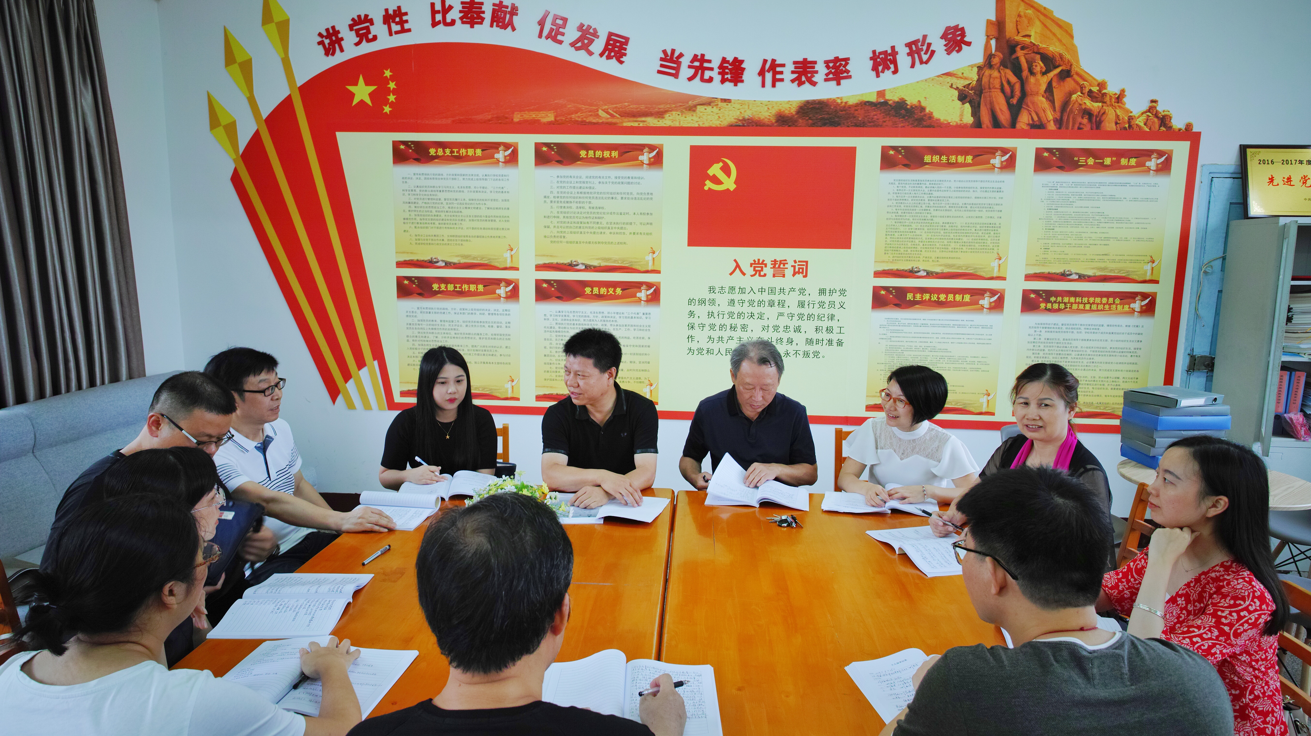 本网讯 6月26日下午三点,党委委员、副校长程智开同志在博雅楼为外国语学院、创新创业学院全体党员上党课,并在课后参加了外国语学院教工第一党支部的讨论。
