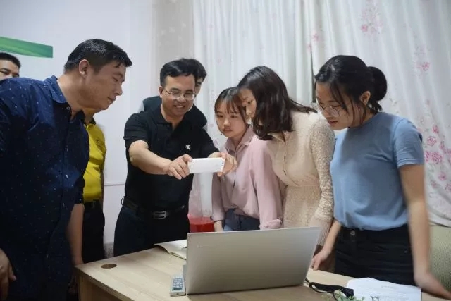 平时与陈弘书记这么近距离交流的机会不多,陈书记的到来,令我们感到十分亲切。陈书记了解我们的微党课主题后说道:“这个很好!”。看到我们的微党课PPT 中提到了永州市委书记李晖来永利官网调研时,勉励永利官网积极打造“三名工程”(名师、名专业、名学生),他拿起手机要给我们拍照,说要记录下我们学习的一刻。
