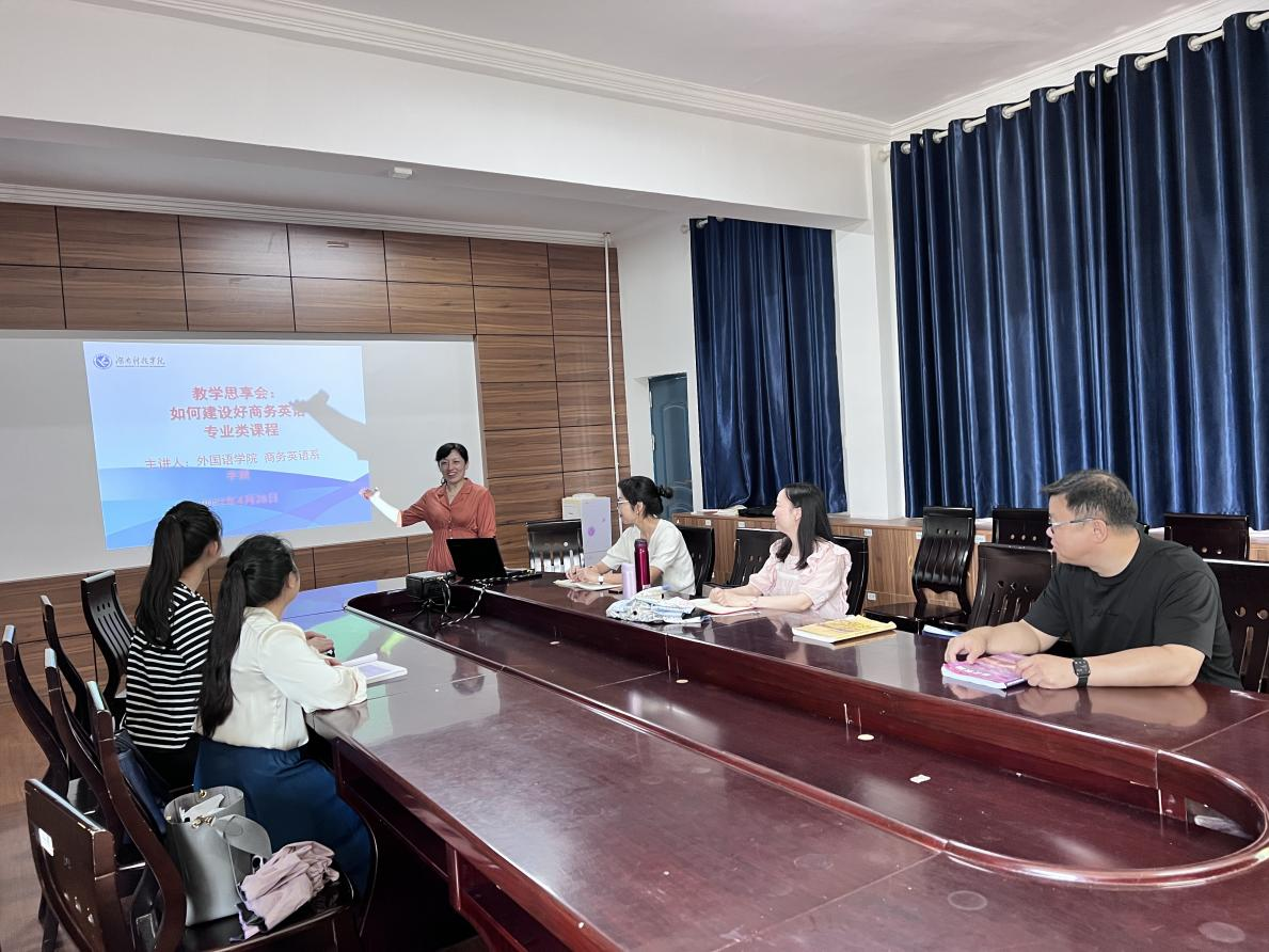 本网讯(通讯员 潘缌缌)5月6日下午,商务英语系在博雅楼202会议室召开商务英语系部例会。会议由商务英语系主任潘缌缌主持,商务英语系全体教师参加了本次会议。
