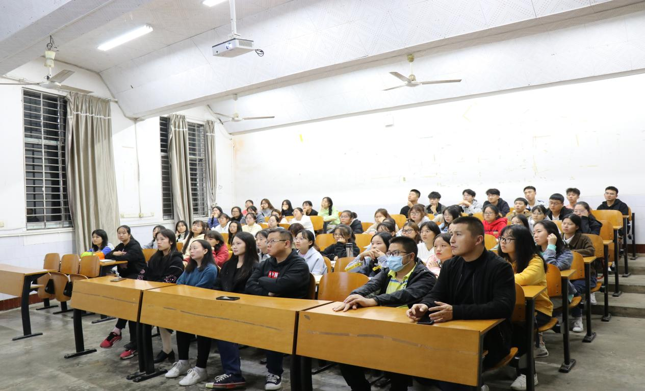 本网讯(通讯员 汪姝 摄影 覃可欣)10月12日晚7:10,外国语学院于博雅楼东1-1开展商务英语专业新生专业教育活动。外国语学院副院长黄昊文,21级辅导员刘罗,教师刘川、章琴、唐晨、李诗慧以及2021级全体商务英语专业学生参与本次活动。商务英语系系主任潘缌缌老师担任本次活动主讲人。