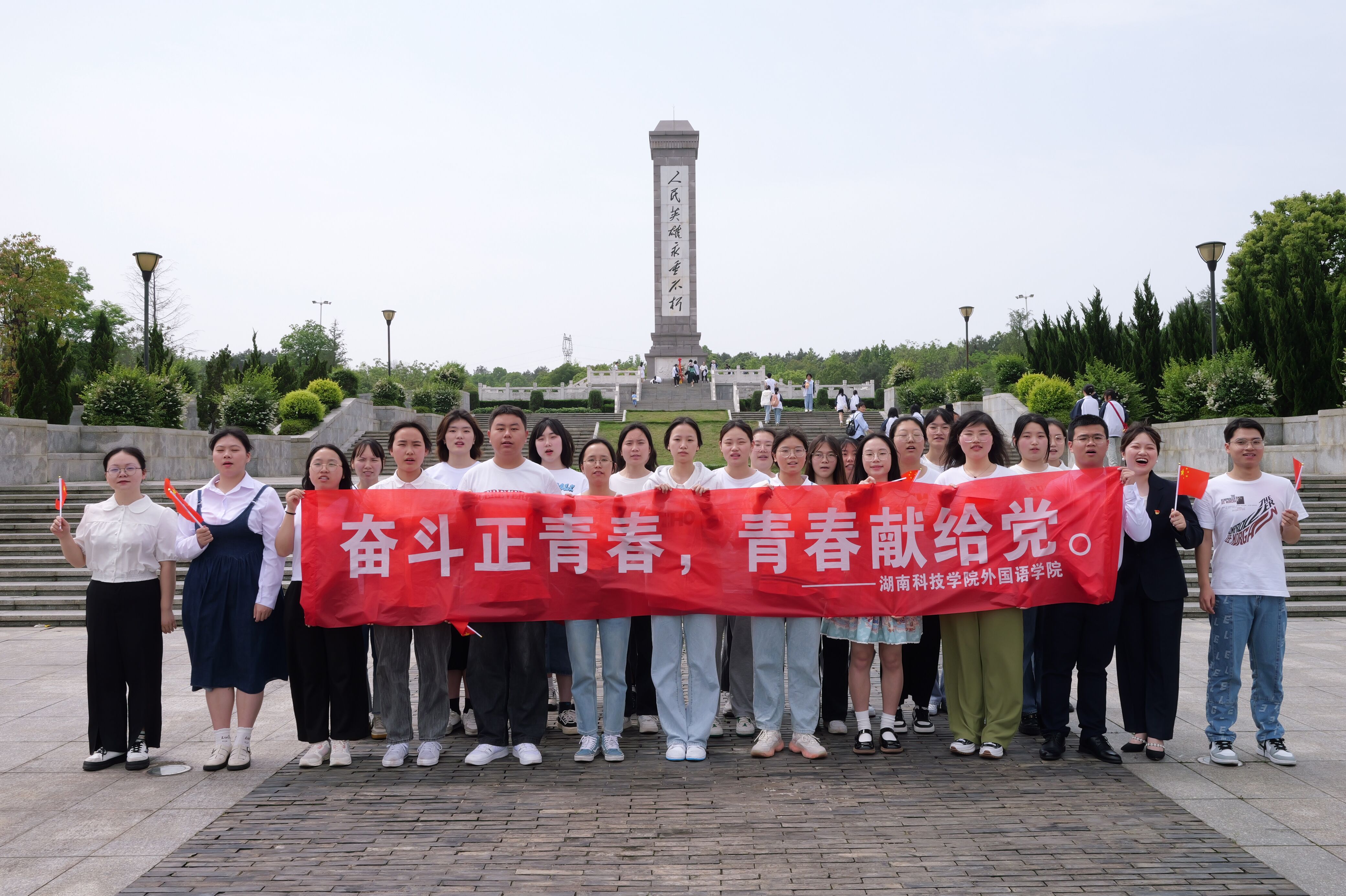 这一次,学生走出教室,走进红色教育基地开展班会活动,汲取奋斗力量。商务英语2002班和英语(师范)2103班分别前往李达故居和永州市烈士纪念园召开主题班会。在李达故居,同学们了解了李达同志的生平事迹,领略了老一辈革命家的风采,他勇于探索、敢为人先的创新精神,坚守信念、不怕牺牲的革命精神激励着在场的每一位师生。烈士纪念园内的革命烈士纪念碑巍然耸立,同学在英雄纪念碑下以青春之名宣誓,发出了“请党放心,强国有我”的呼号。