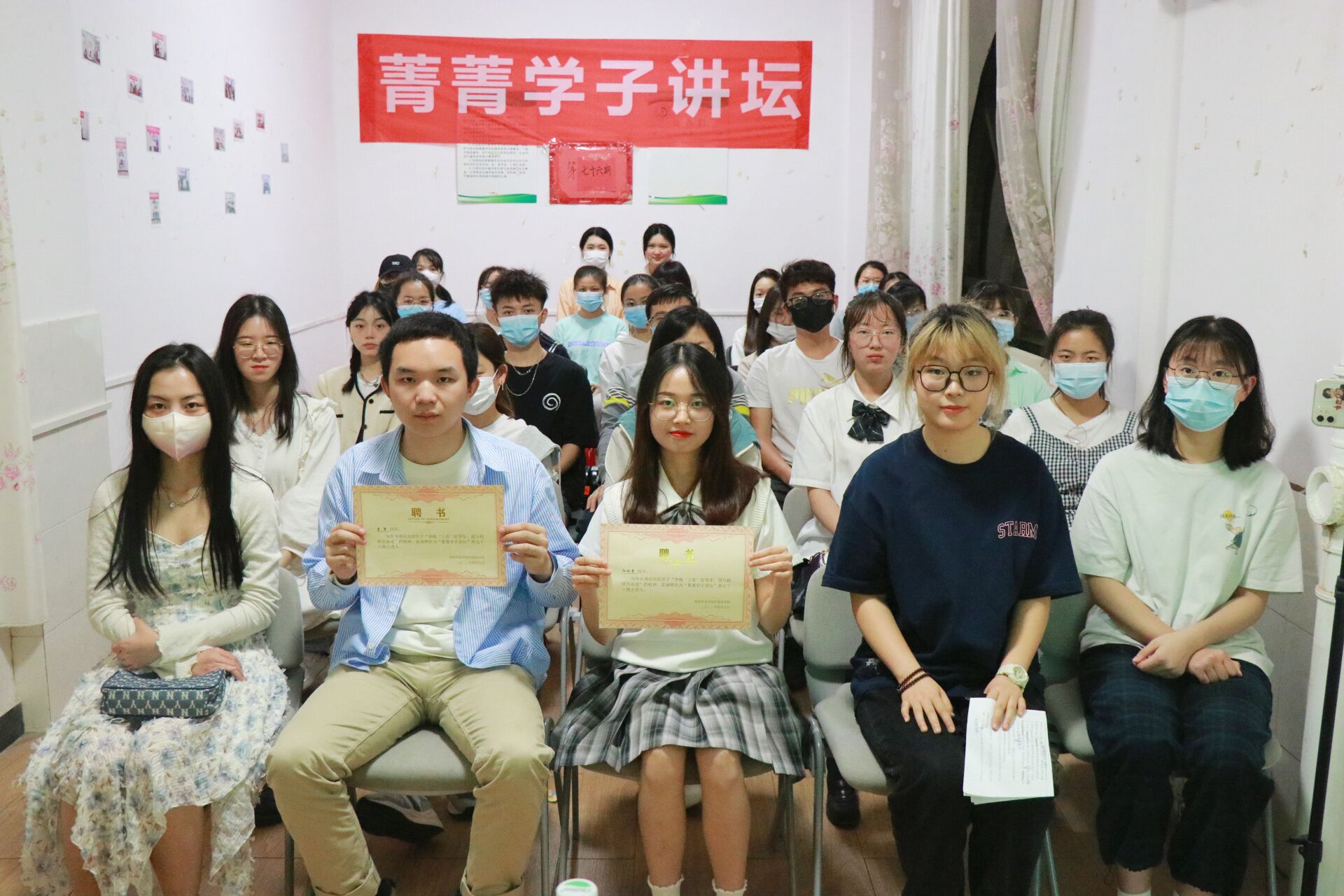 (通讯员 王梓艳 摄影 李西庚) 4月9日晚7:10,外国语学院于菁菁书院开展了以“行而不辍,未来可期”为主题的第七十六期“菁菁学子讲坛”。本期活动邀请了英师1803班李军、英师1804班阳琪秀担任主讲人。由于疫情防控,本次线下仅招募30名观众,并且通过腾讯会议APP进行线上直播。