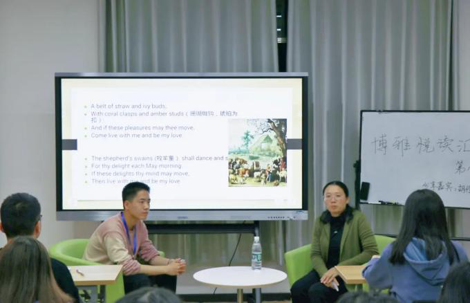本网讯(通讯员 王敏)11月13日晚7:30,外国语学院在创新创业大楼“聚师堂”校企合作工作室317室举办了第八期以“追寻诗和远方:英诗爱情诗小议”为主题的博雅悦读汇。本次邀请的分享嘉宾是外国语学院副教授胡伶俐,分享的文章有《激情的牧羊人致他的情人》、《离别辞:莫伤悲》、《一朵红红的玫瑰》以及《当你年老时》。