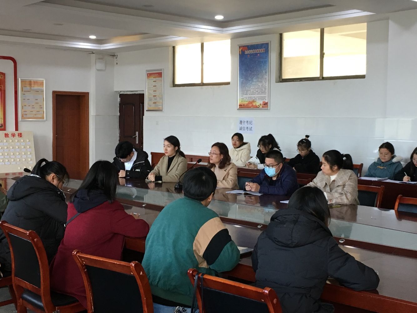 刘青梅肯定了实习生们的工作,实习老师对学生认真负责,虚心向指导老师请教。随后提出三条重要建议:认真备课、及时写教学反思和重视板书。
