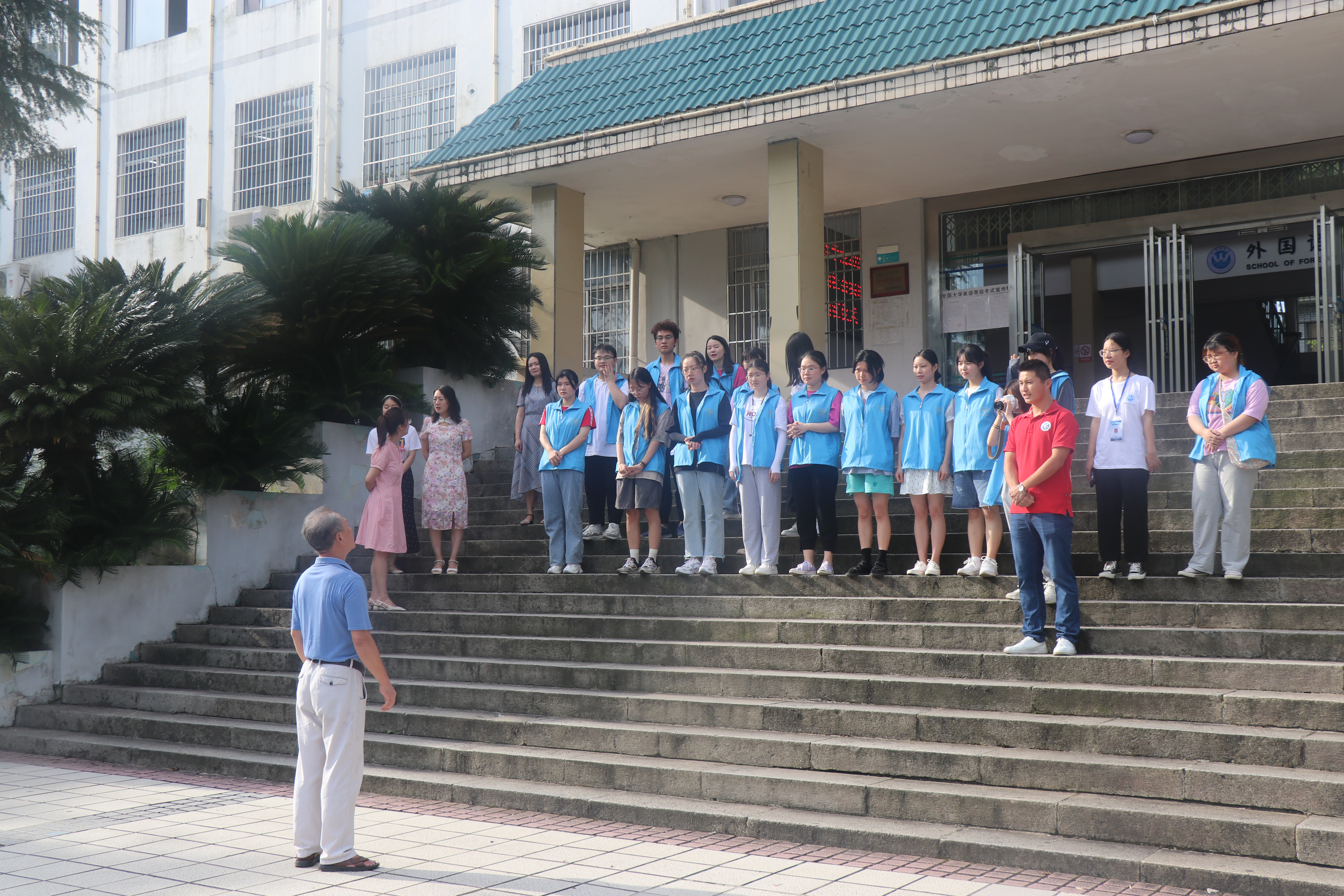 (外国语学院院长欧华恩为志愿者们出征加油打气)