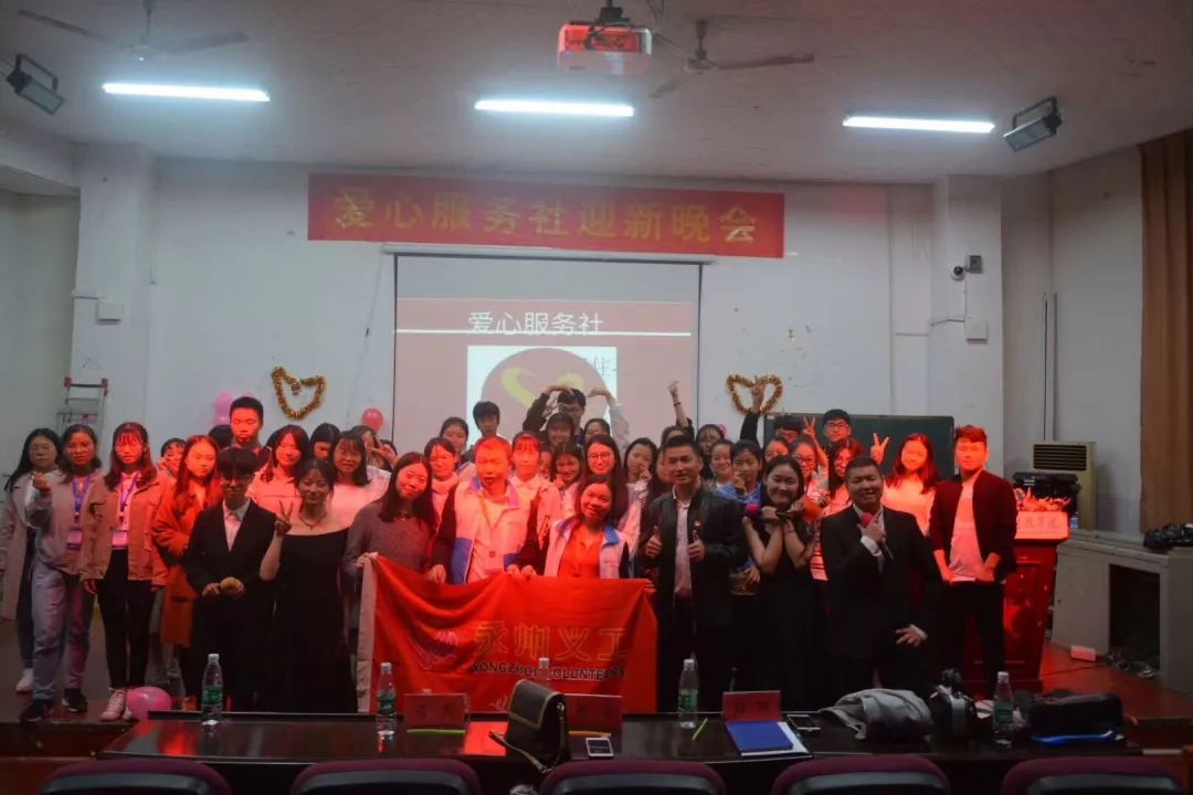 (本网讯 外国语学院/爱心服务社 记者 龚芸双)2018年10月26日晚七点,爱心服务社迎新晚会在社员们的欢呼声中拉开了帷幕,15级辅导员刘罗老师、零陵义工协会策划部张兴先生、秘书长廖芬女士以及义工协会的代表参与了此次的迎新晚会。爱心社大家庭的成员欢聚一堂,共同享受这一场精彩绝伦的视听盛宴!