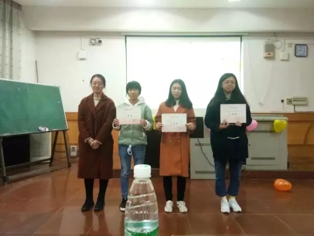 颁奖环节:最后由学生会主席叶力慧,副主席刘慧,前女生部部长谢睿分别颁发一、二、三等奖,学生会副主席刘慧颁发优胜奖。