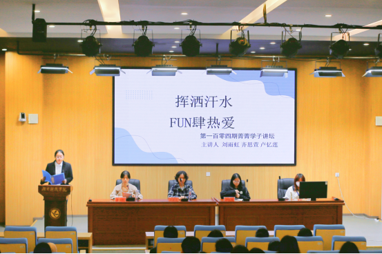 (通讯员 欧玉莹 摄影 陈莹梅)11月19日晚19:10,外国语学院于博雅楼东三报告厅举办了第104期菁菁学子讲坛。主题为“挥洒汗水,Fun肆热爱”。本期讲坛的主讲嘉宾为英师2302班刘雨虹、日语2301班齐思萱、商英2302班卢忆莲。此次活动共有178名同学主动报名参加。