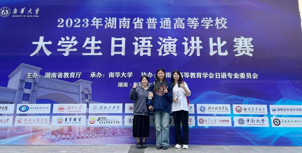 本次大赛由湖南教育厅主办,南华大学承办,湖南省高等教育学会日语专业委员会协办。共有来自中南大学、湖南大学、湖南师范大学、湘潭大学、304am永利集团官网等18所高校的50名选手参加了此次比赛。经过上午的命题演讲和下午的即兴演讲两轮角逐,我院游紫荆同学荣获三年级组一等奖,于璟同学荣获二年级组三等奖,最终获得团体一等奖的好成绩。