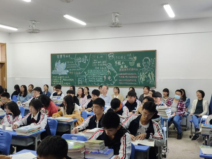 座谈会后,欧华恩一行听取了高一实习老师贺雅婧的一堂英语课,并开展了评课活动。大家对这堂课给予了充分肯定,并提出了一些建设性的意见。欧华恩指出实习是高等教育的重要一个环节,要抓住这次机会提升自己的师范技能,课堂设计要创新,课程思政要做好,活动形式要多样,他鼓励英语专业学生要在教学中坚持不断学习,不断进步。