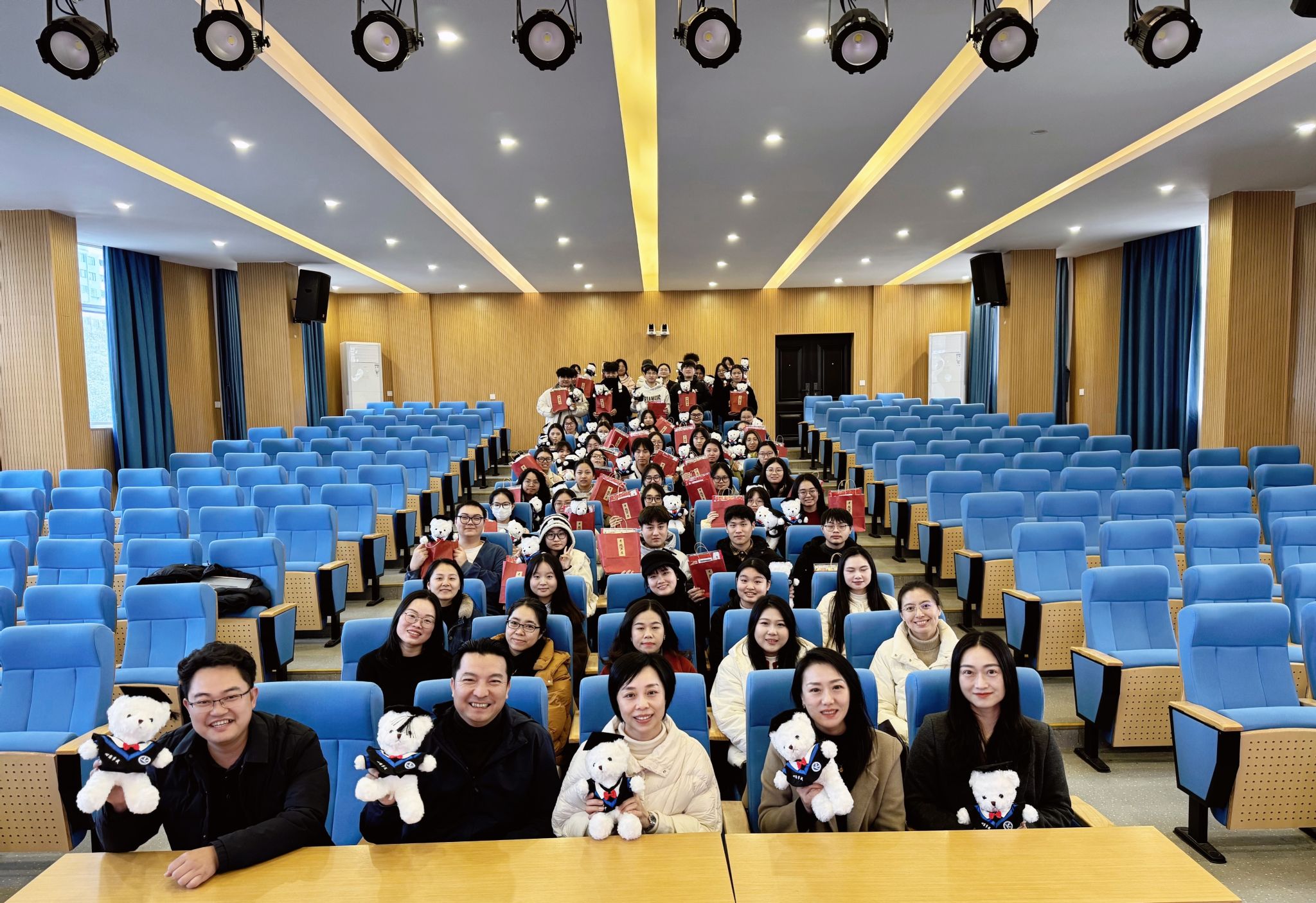 院领导亲手将一份份满载心意的“能量包”递到学生手中。包内含“心想事成” 湘科院小熊、外院专属笔记本、学校考研文具及学弟学妹手写祝福明信片,礼物兼具实用性与情感温度,承载着外院大家庭特有的关怀与传承。