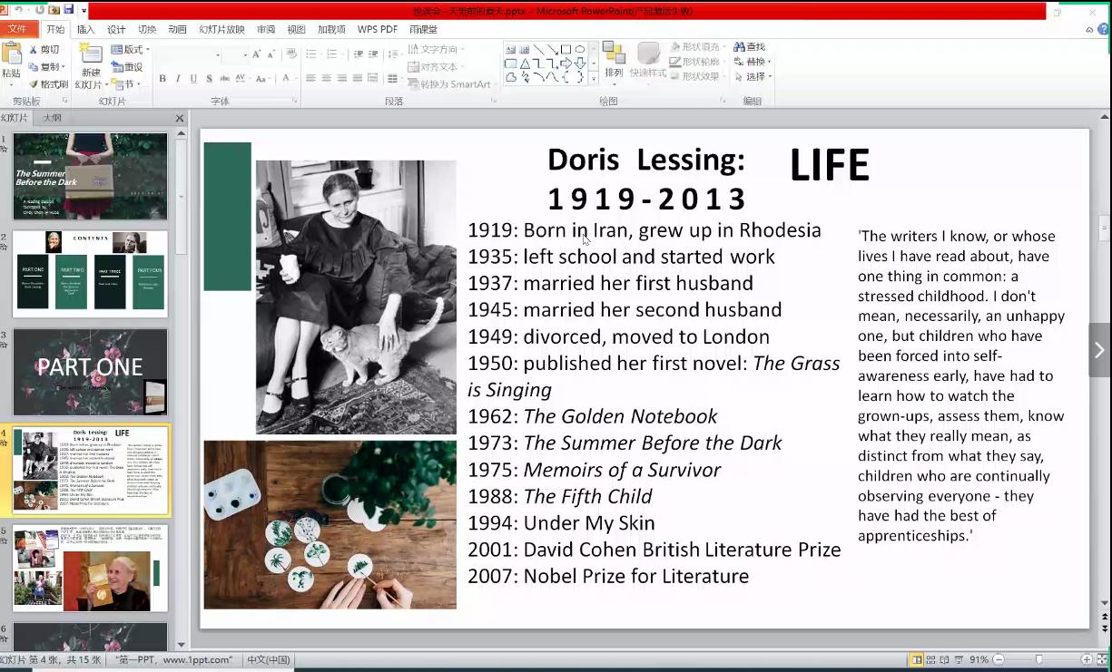 本网讯(通讯员 黄子幸 唐嘉琪)“齐心抗‘疫’,停课不停学”。4月7日晚外国语学院菁菁书院品牌活动“博雅悦读汇” 于线上顺利举行,200多名学生主动报名参加。本次应邀和大家一起悦读的嘉宾是外国语学院专任教师陈碧园副教授,她从教20余年,主讲科目有《英美国家概况》等。此次她分享的书目是多丽丝·莱辛的《The Summer Before the Dark》。