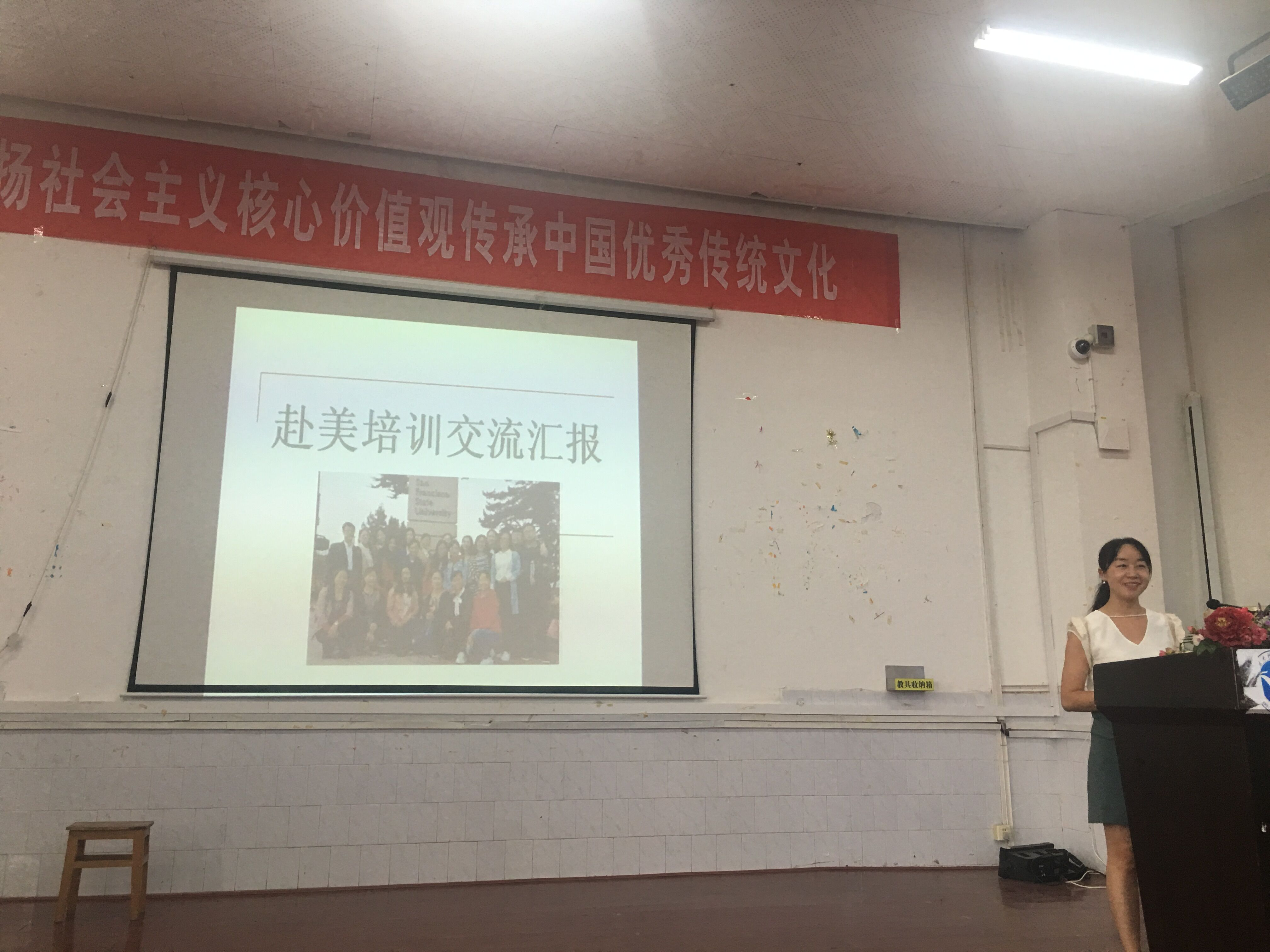 (文/刘婷、蒋海霞 图/唐媛)9月18日下午2时45分,我院在博雅楼东三举办暑期赴美培训汇报会,汇报会由院长欧华恩主持。张瑞林、肖芳英、杨梅三位老师代表全团23名暑期赴美培训教师,针对赴美培训的不同收获,向院领导和全体教师做了详细汇报。