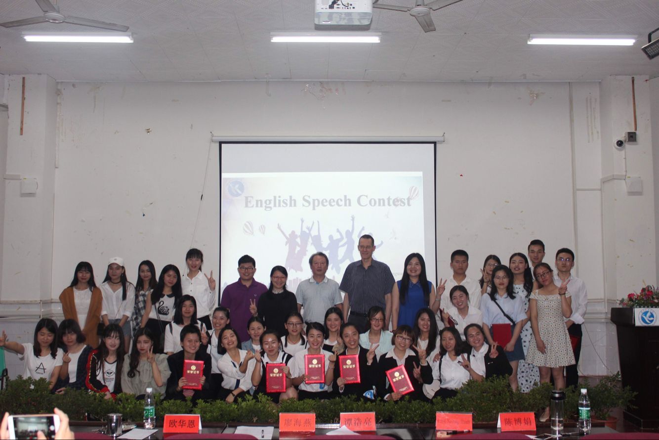 本网讯6月16日下午,外国语学院“健康、快乐、成长”主题英语演讲比赛在博雅楼东三拉开序幕,该院全体14级英语专业生参加此活动。外国语学院院长欧华恩、音乐与舞蹈学院外籍教师Ernst Nolting Haulff教授等出席活动并担任评委。据本次活动的发起人、该院专任教师陈博娟介绍:本次演讲比赛启用传统以及风靡全球的TED演讲模式,让学生在舞台上一个人独特的视角,来诉说发生在他们身边成长的事。选手们都是通过海选,复赛,导师抢人i want you,导师指导进入决赛的。面对如此激烈的角逐每一位选手都使出浑身解数,从演讲稿的撰写,背景音乐的选择,道具的制作,演讲动作与表情安排等,选手们都做了精心准备。声情并茂,活泼向上,引领全场,富有激情,引人入胜的演讲,让台下的同学们情绪高涨, 每个同学都在享受这场高水准的英语视听盛宴。在舞台上同学们穿插了精彩的节目表演,英文歌曲,走秀,英语话剧,吉他弹唱,大家都在舞台上展现着自己的青春快乐,绘声绘色地用英语演绎着每一句话,展示一个又一个生动有趣的故事;