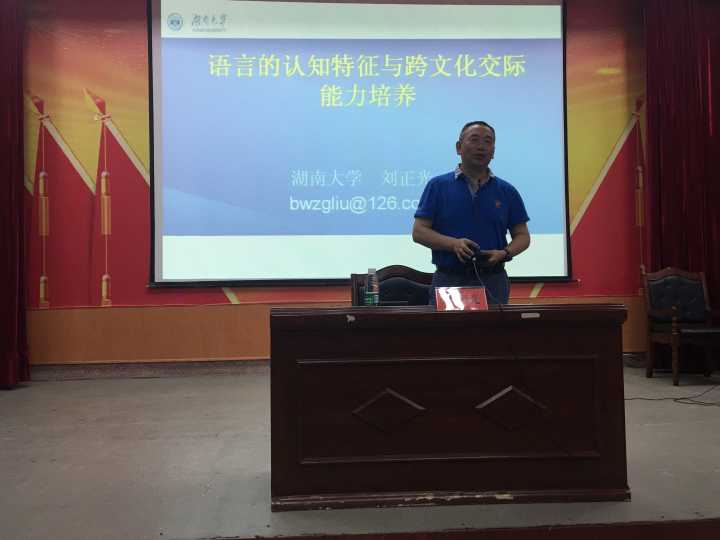 本网讯(通讯员 孙浩翔)6月19日上午,湖南大学外国语学院院长、博士生导师刘正光教授莅临永利官网在明德楼一楼报告厅作了题为“语言的认知特征与跨文化交际能力培养”的学术讲座。外国语学院院长欧华恩教授主持了讲座,外国语学院部分教师以及全体学生聆听了此次讲座。