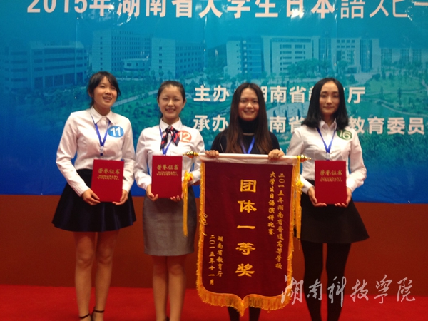 本网讯 11月7日,在2015年湖南省大学生日语演讲比赛中,永利官网日语专业学生彭紫薇、邓妩媚、刘佳男分获四年级组、三年级组、二年级组个人一等奖,并以总分第一的成绩荣获团体一等奖。校党委书记陈弘对获奖学子及团队表示祝贺,希望大家再接再厉,不断实现自我、超越自我,再创辉煌。