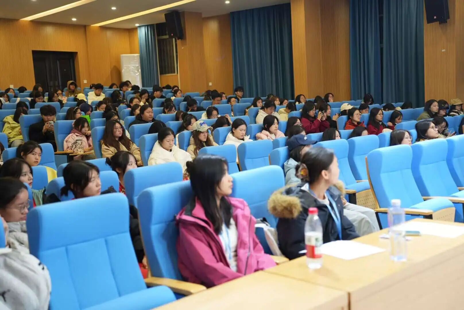 当晚,同学们怀揣热忱,共赴这场劳动荣光的盛会。大家笑意盈盈地有序入座,眼底满是对劳动榜样的期待,现场氛围既温馨又洋溢着蓬勃的青春朝气。