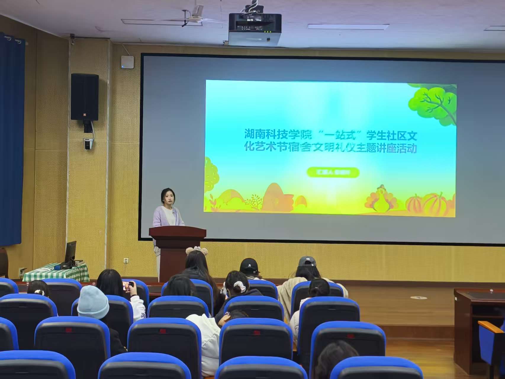 为培育学生宿舍文明素养,筑牢和谐温馨的住宿环境,2025年12月17日晚,304am永利集团官网第三届“一站式”学生社区宿舍文明礼仪专题讲座在博雅楼西三顺利举办。本次活动以“雅舍共守,礼伴同行”为主题,吸引全校数百名学生踊跃参与,现场氛围热烈融洽。