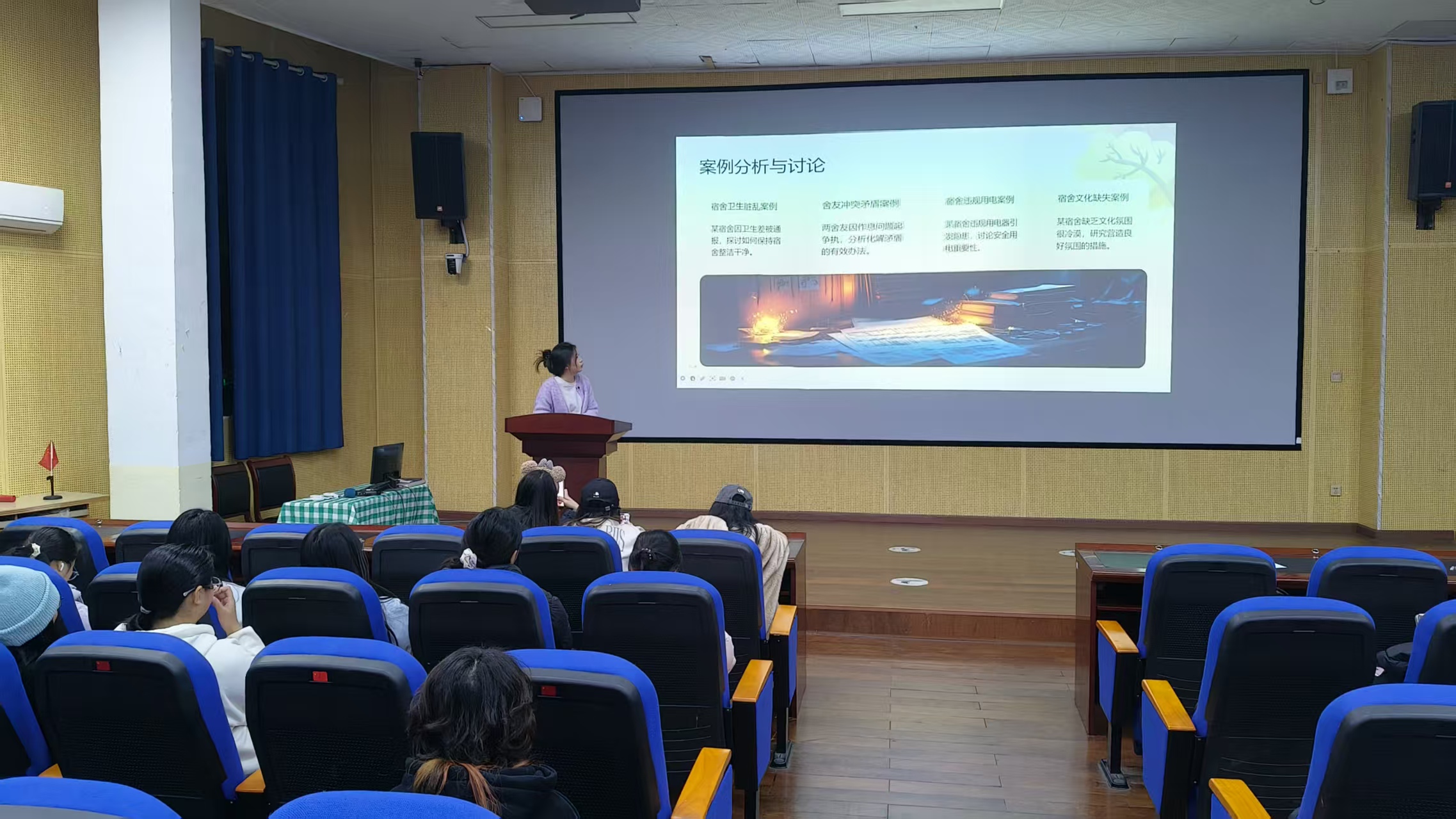 据悉,本次讲座由学生工作部主办、旅游与文化产业学院承办,活动内容紧密贴合学生宿舍生活实际,精准聚焦宿舍相处中的核心问题,从公共礼仪、室友交往礼仪、安全礼仪三大核心维度系统展开。主讲嘉宾立足校园真实案例,用通俗易懂的语言,深入浅出地讲解了宿舍卫生清洁分工、作息时间协调、有效沟通技巧、规范用电准则等实用知识。讲座过程中,嘉宾巧妙穿插趣味互动提问环节,打破传统宣讲的沉闷感,让同学们在轻松愉悦的氛围中深化对礼仪规范的理解与认同。