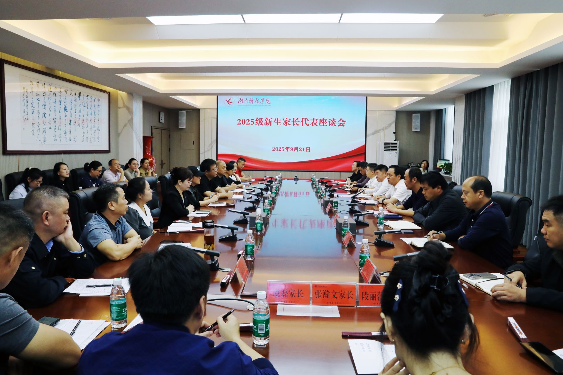 本网讯(通讯员 郑锐 摄影 谢志豪)9月21日,学校召开2025级新生家长代表座谈会,校党委副书记、校长黄创霞出席会议并致辞,来自吉林、内蒙古、河北、江西等全国各地及湖南省内市州的20余位新生家长代表参加座谈会,会议由党委委员、组织部部长杨涛主持。