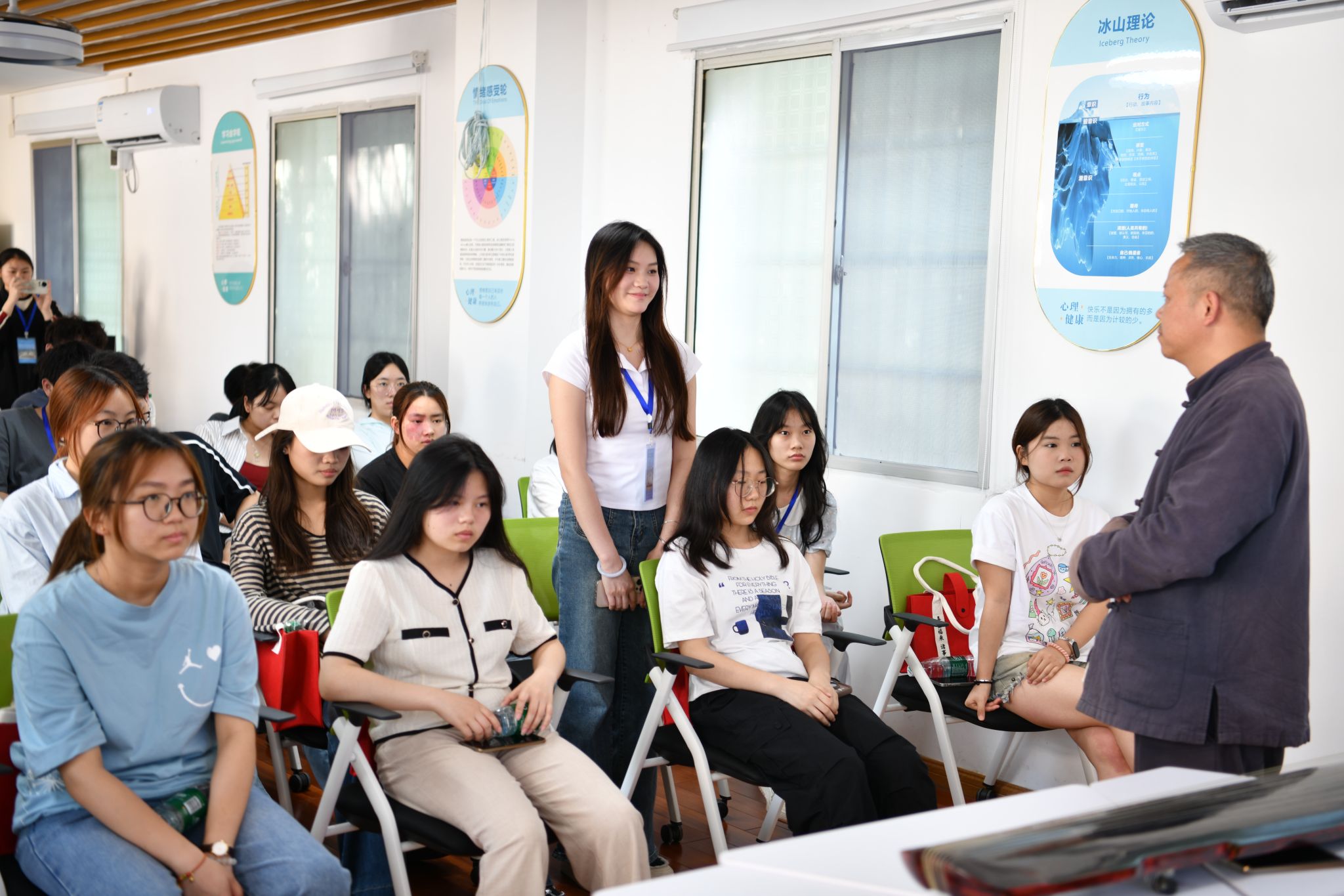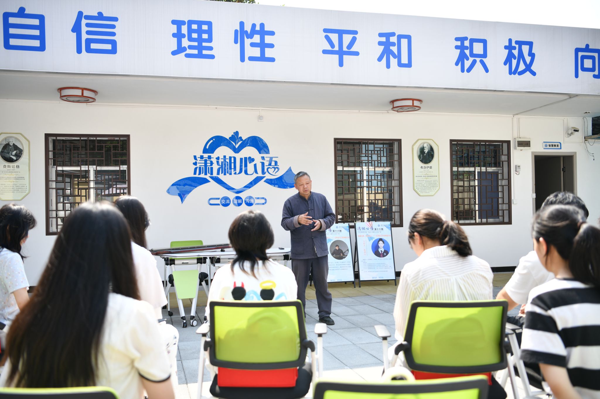 活动包含古琴聆听、音乐疗愈知识讲解、自由讨论与互动答疑等多个环节。欧阳平彪以“潇湘古韵·琴音愈人”为主题,深入探寻古琴文化中蕴含的疗愈力量,从独特的演奏技法到深远的文化内涵,娓娓道来,引导学生感受古琴艺术的魅力,舒缓内心压力、培育平和心境。