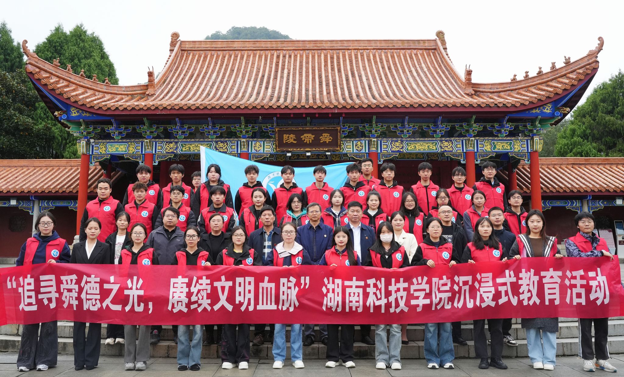 本网讯(记者 谷利梅 摄影 吴伊娜)当历史典籍碰上实地走访,当古代先贤对话当代青年,思政教育应该如何打破边界、“破圈”育人?近日,永利官网30余名舜德学子代表奔赴永州市宁远县舜帝陵,开展了一堂沉浸式“移动思政课”,通过实地探访感悟舜德精神,筑牢文化自信。