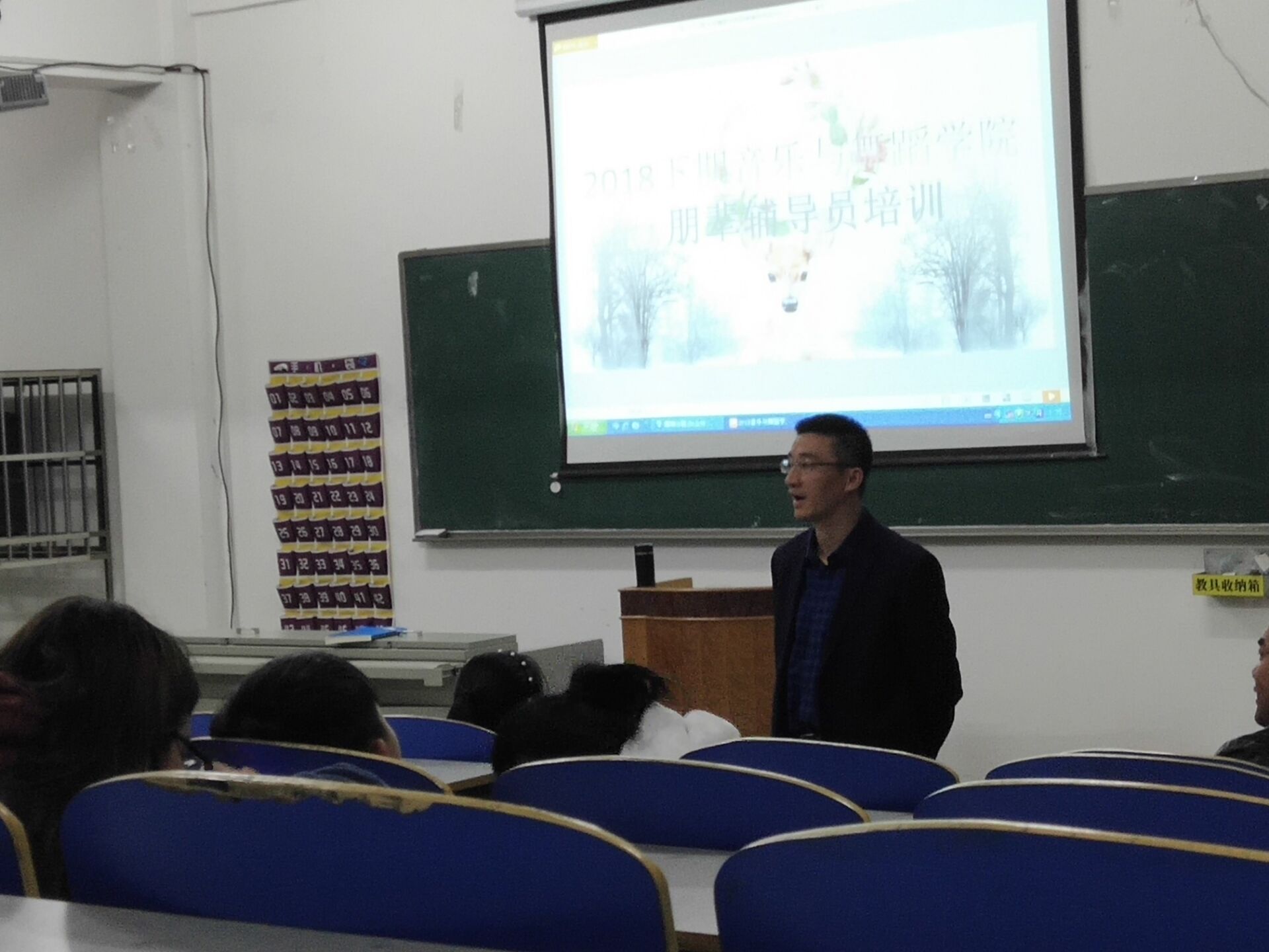 本网讯(通讯员吴潭袁慧明)10月15日晚,音乐与舞蹈学院在阶梯教室举行了2018级心理朋辈辅导员首场培训。该院党总支副书记兼副院长蒋磊出席,会议由学工办主任刘华剑主持,院系主要团学干部及2018级全体班干部参加了本次培训会。