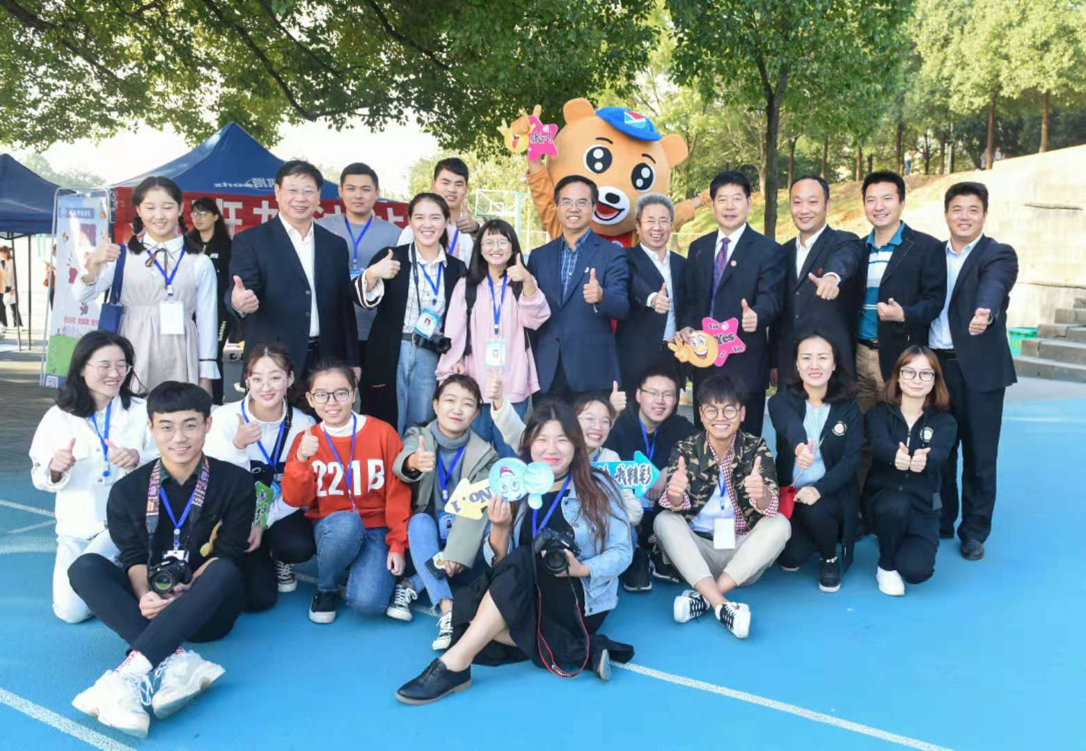 校党委书记陈弘,校长曾宝成,党委委员、宣传部长杨涛,学工部长唐华山等学校领导亲临“加油站”现场,慰问站点志愿者,并与科院易班代言人“易小熊”亲密合影留念。陈弘书记指出:“易班学生工作站是一个崭新的、积极向上的集体,希望在全体站员的努力下,越办越好!”并在留言板上留言寄语运动健儿“更高,更快,更强!”,为运动员加油打气。