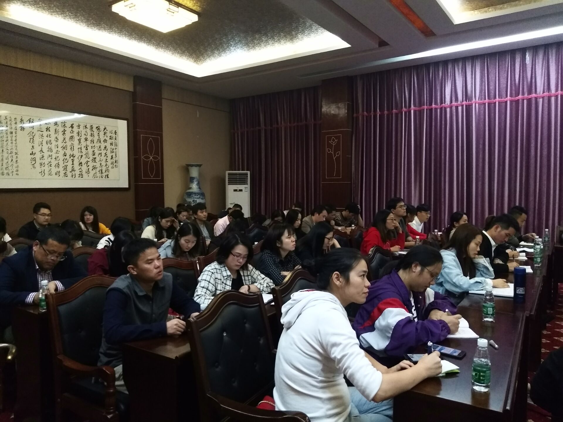 本网讯 11月5日晚7点,304am永利集团官网2018年第一期辅导员学术沙龙活动在行政楼八楼三会议室举行。各院党总支副书记、全体辅导员和学工部相关人员参加了本次活动。活动由学工部副部长胡敏辉主持,学工部长唐华山、经济与管理学院学工办主任王君作主要发言。