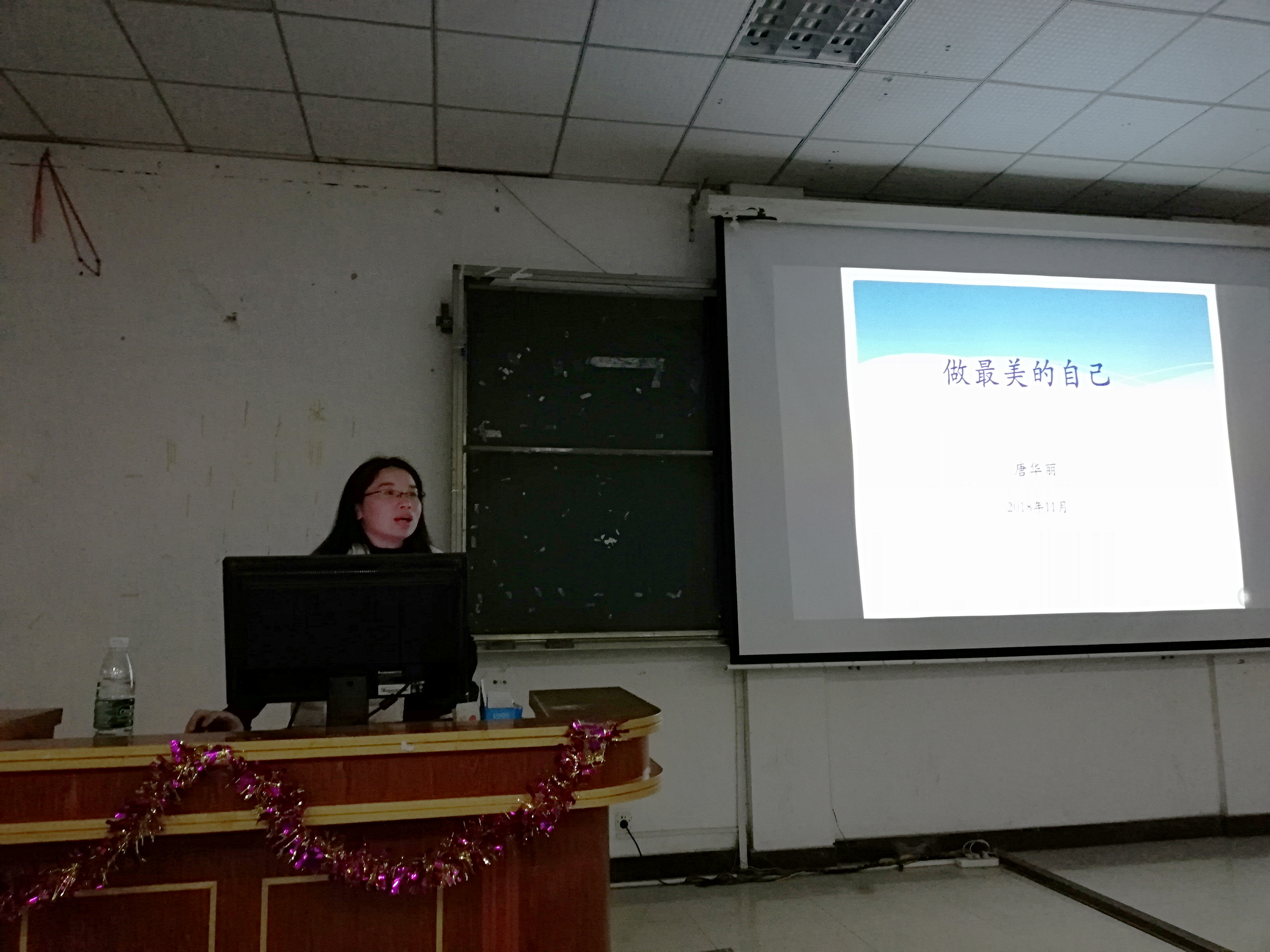 本网讯(通讯员王金玉覃小明)为增强女生防范意识,提高女生自我保护能力,促进广大女生身心健康。11月27日晚,传媒学院联合旅游与文化产业学院在立信楼602开展了以“做最美的自己”为主题的女生安全教育讲座,传媒学院党总支副书记唐华丽,旅游与文化产业学院党总支副书记潘清远作为主讲人出席讲座,传媒学院全体大一女生及旅游与文化产业学院全体大一、大二、大三女生聆听了本次讲座。