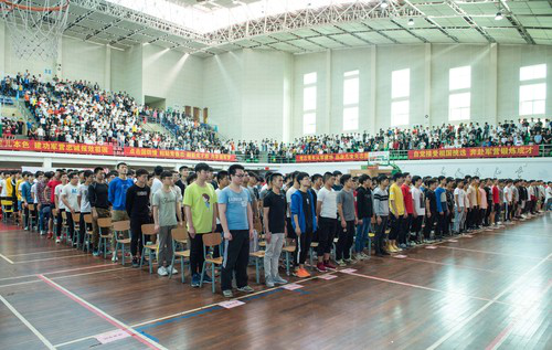 本网讯(实习记者黄瑾戴鹏飞,摄影赵超超) 建功新时代,青春献国防。4月23日,永州市2019年征兵宣传进校园暨大学生应征报名在永利官网启动,市委常委、市委宣传部部长贺辉,市委常委、军分区政委冯紫英,军分区副司令员陆鸿,军分区动员处处长唐柳军,零陵区委常委、区人武部部长王建武,永利官网党委书记、校长曾宝成,副校长程智开,学工部、武装部长唐华山以及3000余名学生参加启动仪式。仪式由陆鸿主持。