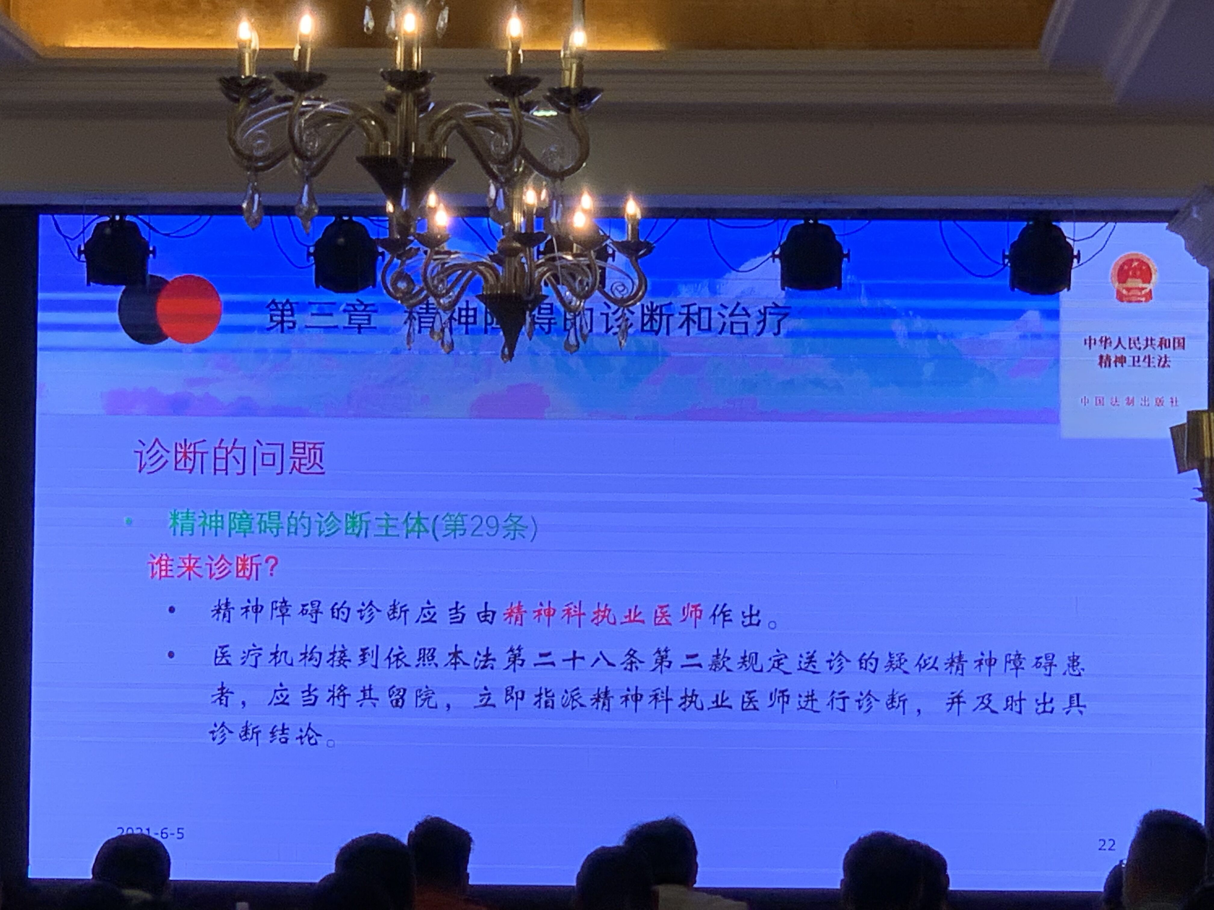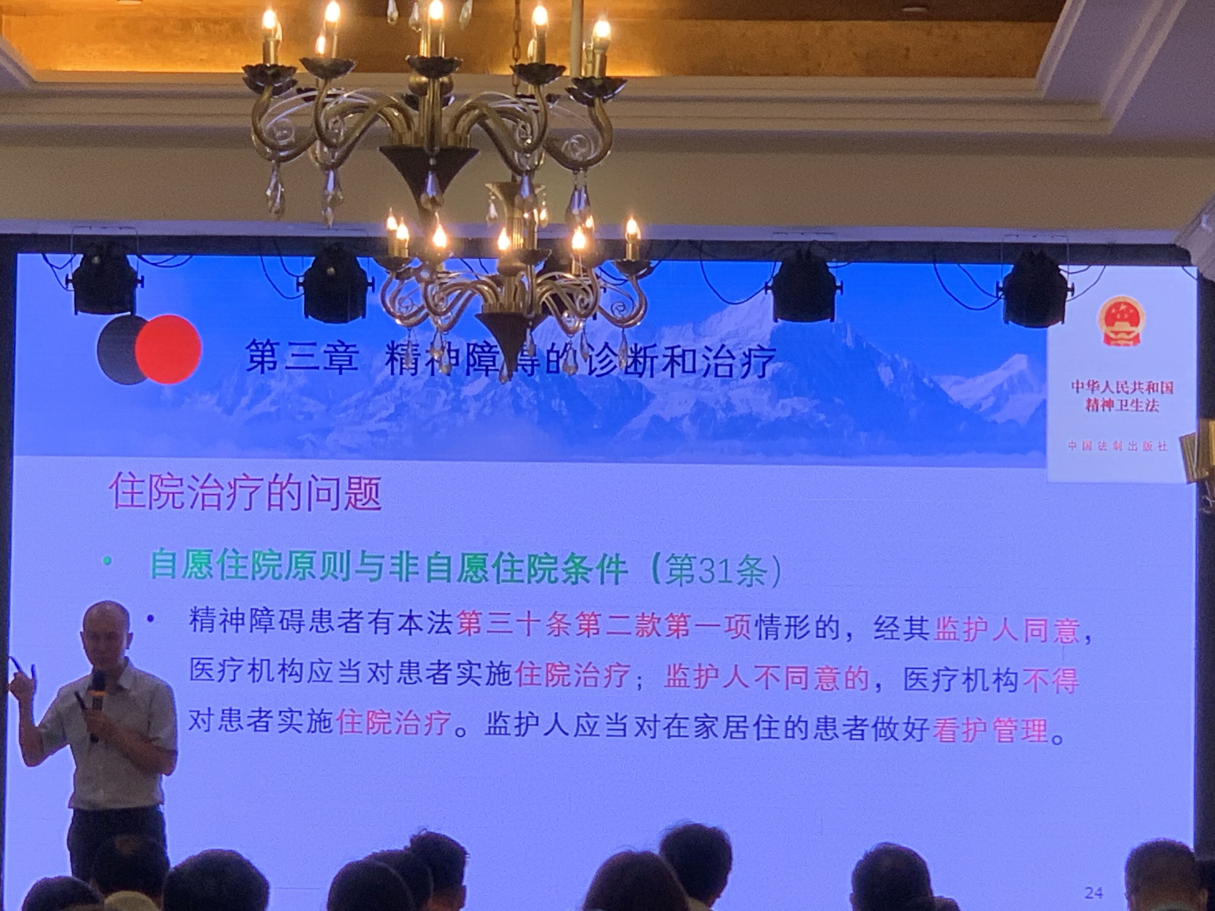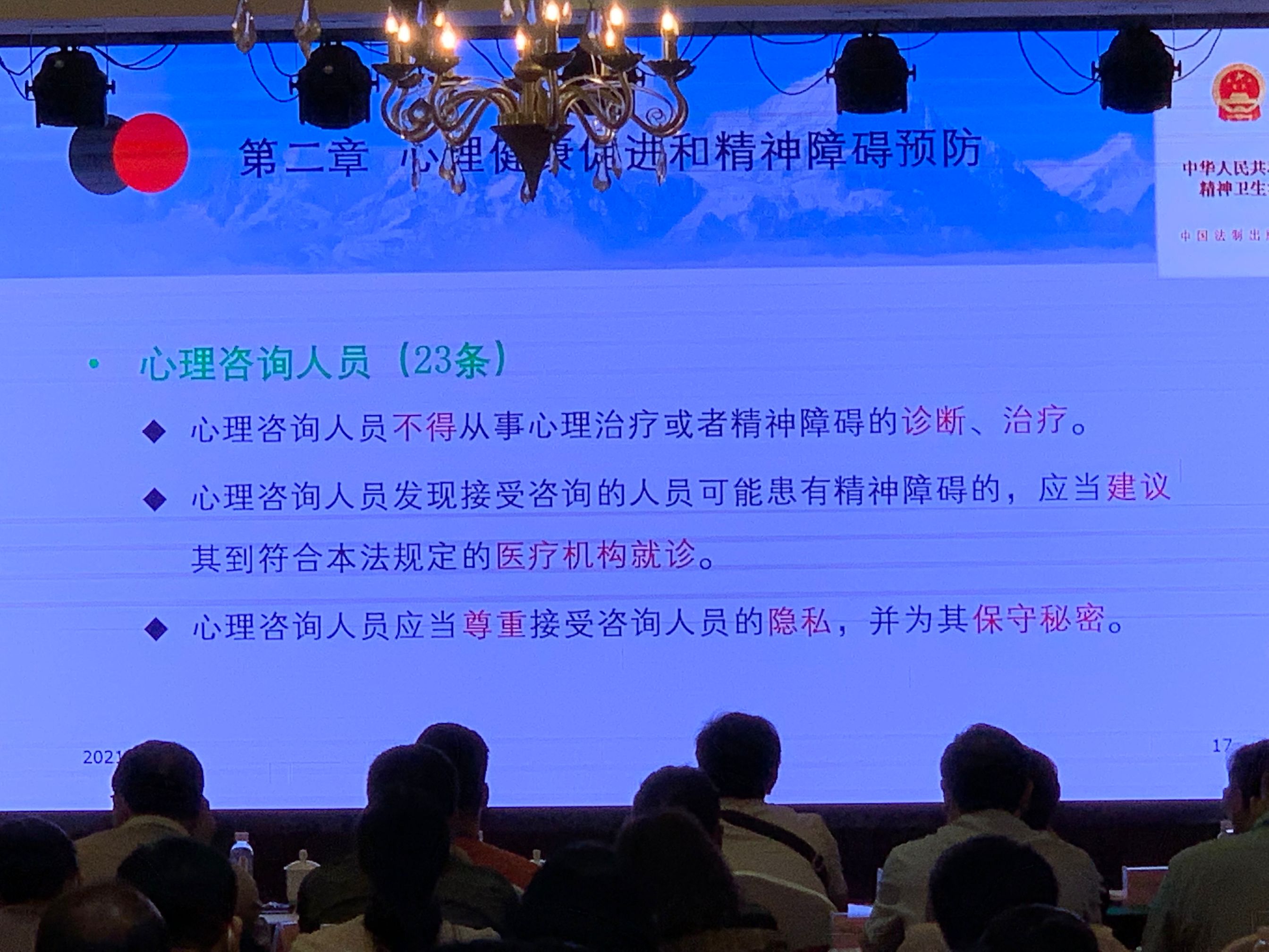 会议中诸位专家分享心理健康知识和工作原则等内容,讲述各类精神障碍的主要特征及常用的心理治疗技术,从送、诊、治、出四个方面对精神卫生法进行解读,严格遵守工作中的法律边界。